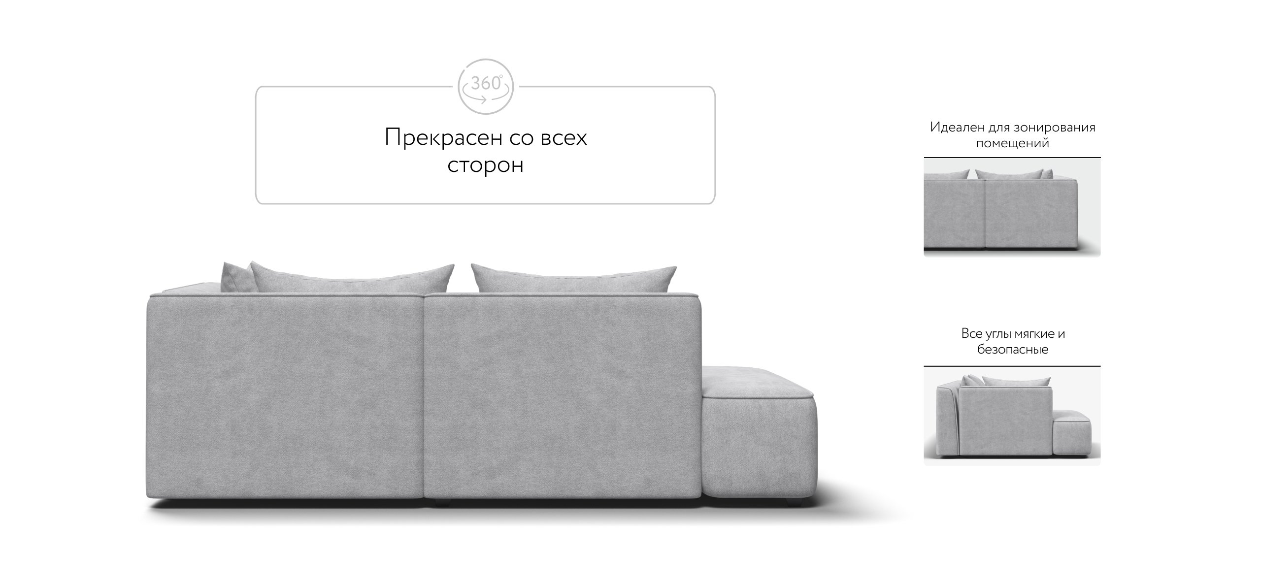 Универсальный дизайн 3-в-1 позволяет быстро менять его форму — левый угол, правый угол и прямой — всё для Вашего комфорта.