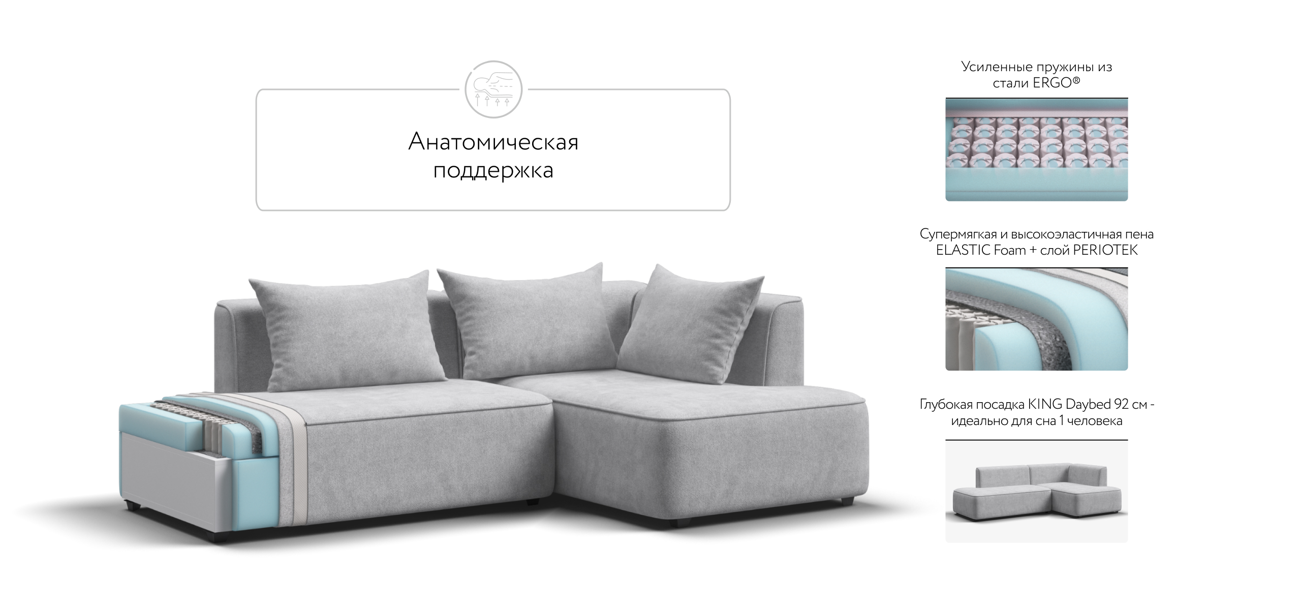 Усиленный блок независимых пружин ERGO + слой PERIOTEK придают объём и упругость