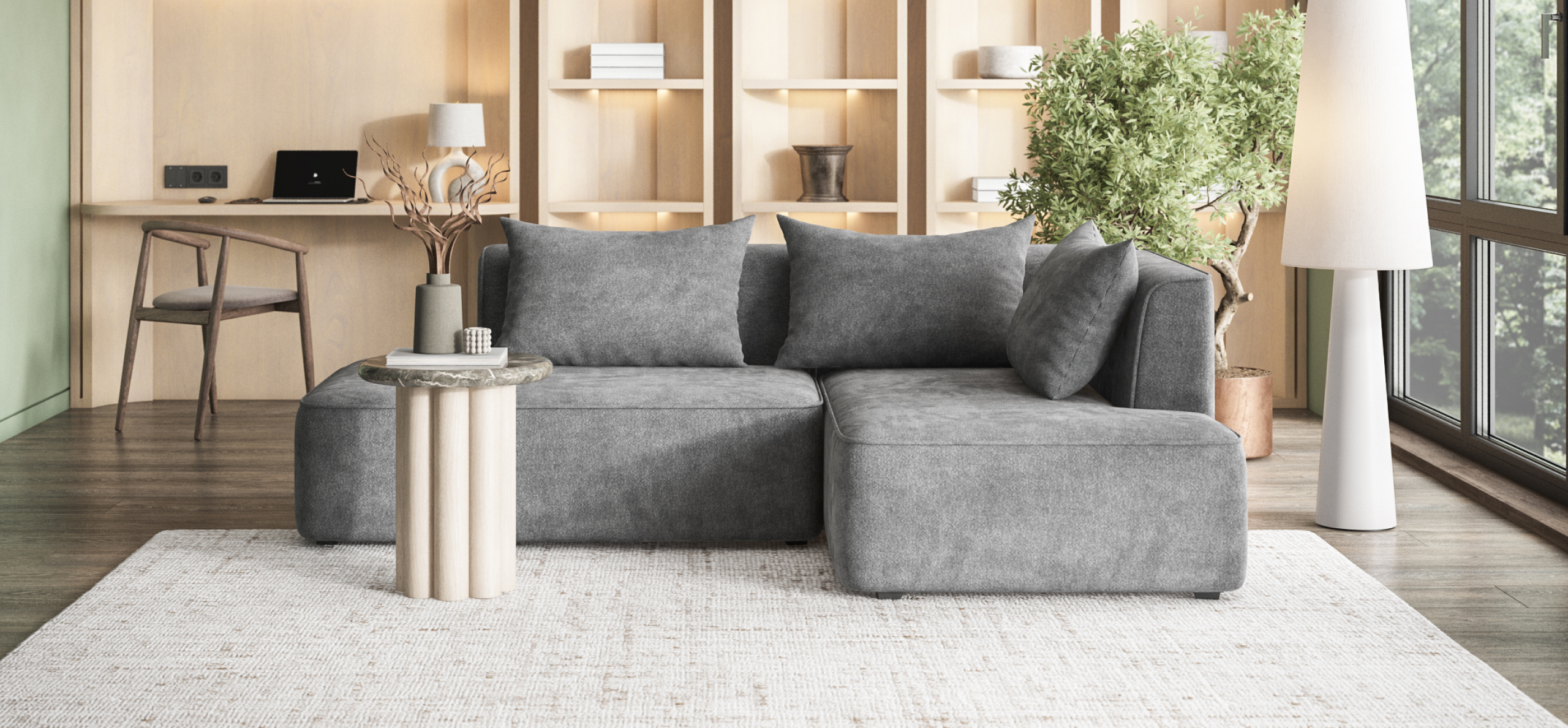 Универсальный дизайн 3-в-1 позволяет быстро менять его форму — левый угол, правый угол и прямой — всё для Вашего комфорта.