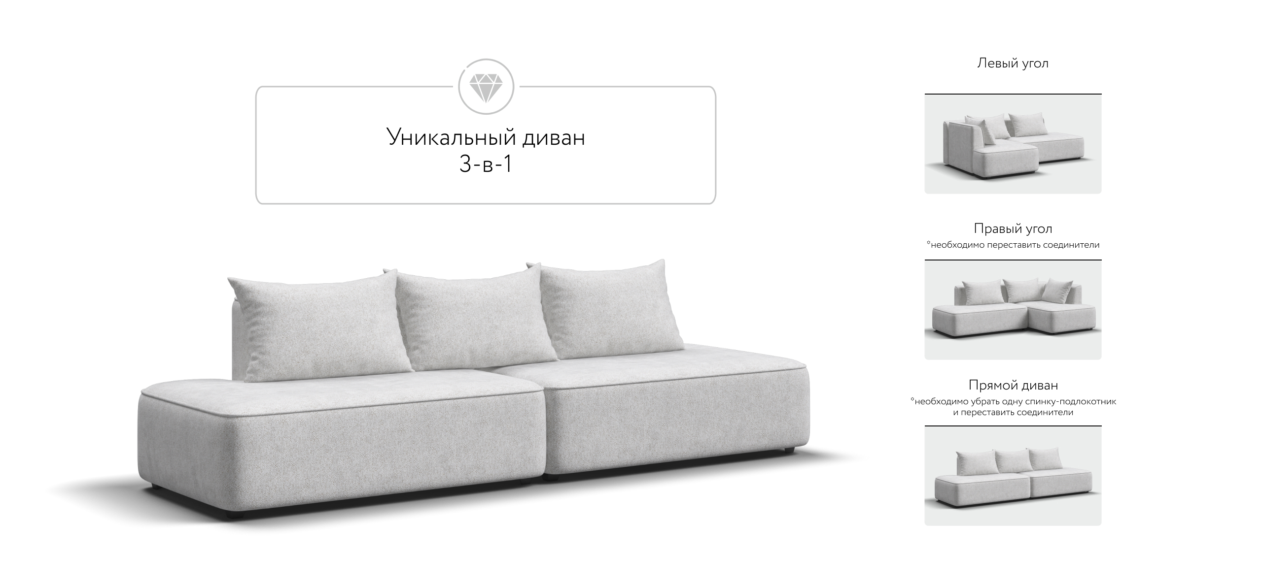 Уникальный диван 3-в-1: прямой, левый угол, правый угол