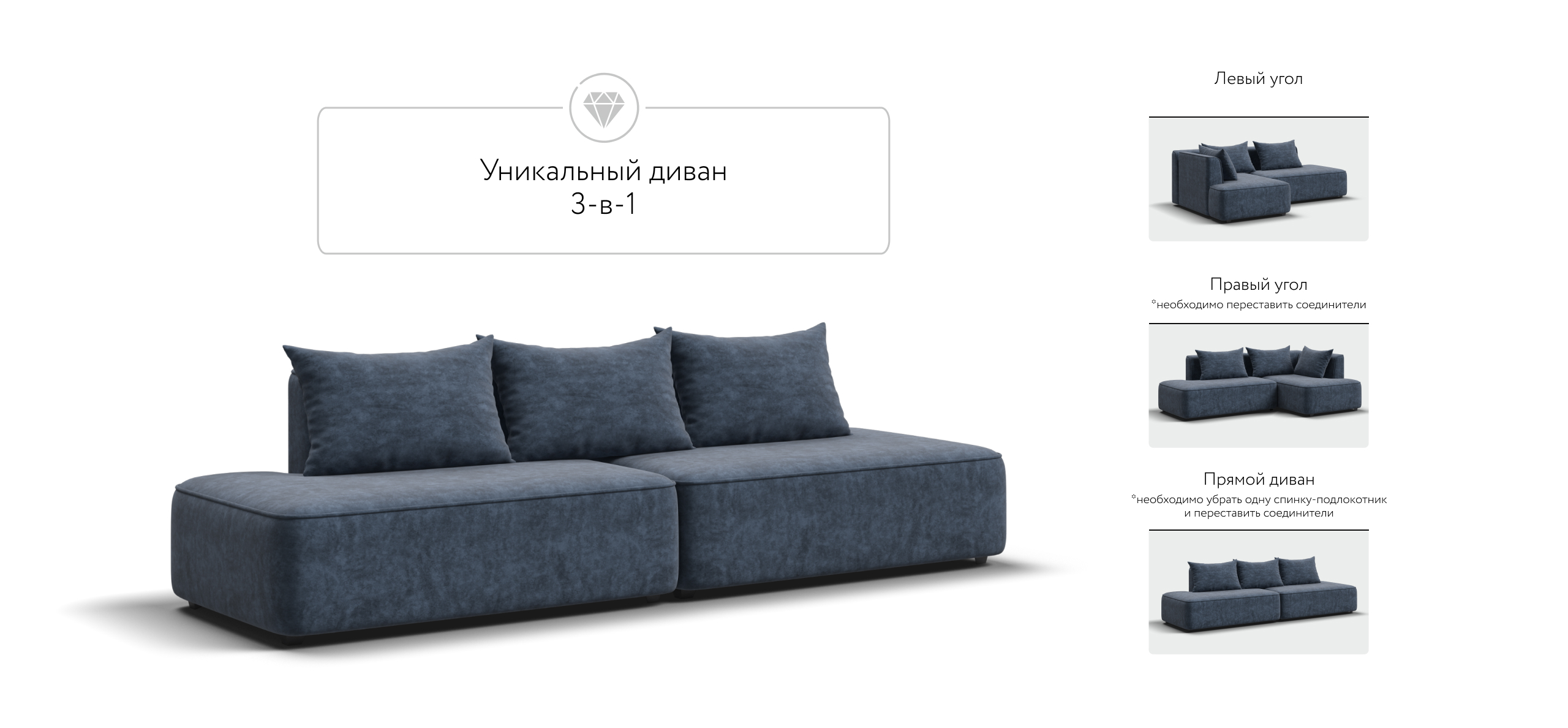 Уникальный диван 3-в-1: прямой, левый угол, правый угол