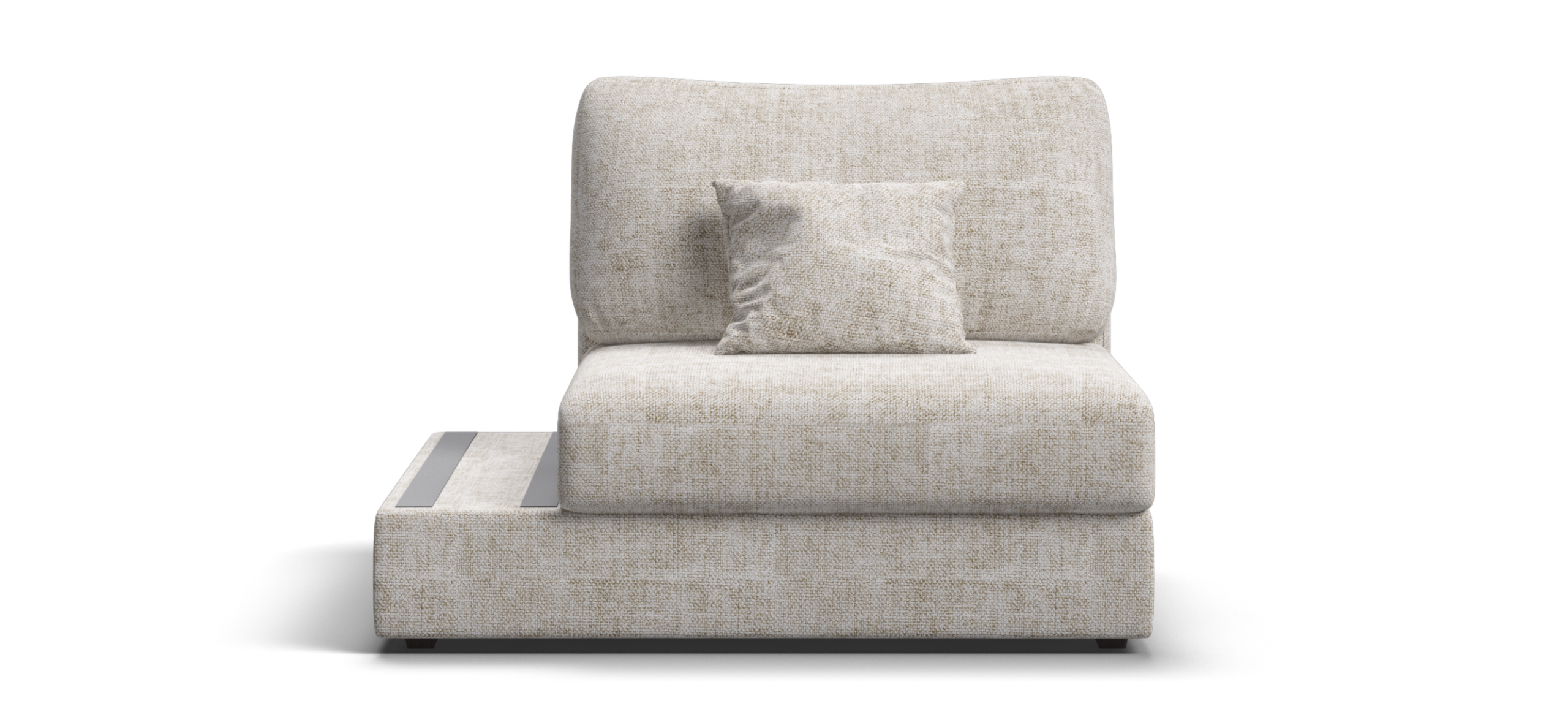 Дополните модуль мягким подлокотником, либо подлокотником полкой из ЛДСП. Модуль не универсальный, он может быть установлен только на правую сторону модульной системы.Преимущества материала