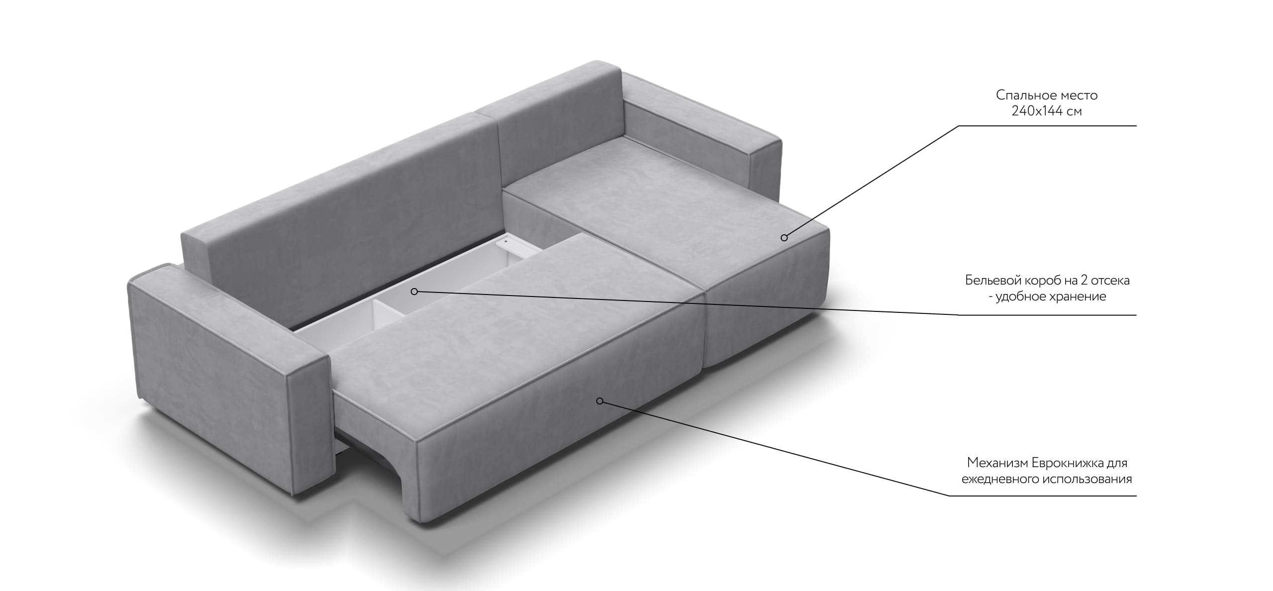 Угловой диван NORD 2.0 с мягкими широкими подлокотниками, строгой симметрией и минималистичной отделкой идеально дополнит современный интерьер в стиле лофт. Днем Вы с комфортом сможете провести время за просмотром любимого фильма, а ночью трансформировать диван в полноценное спальное место, благодаря анатомическому матрасу и надежному механизму еврокнижка. Диван имеет дизайн 360, что позволит расположить его в любой части гостиной. Универсальный угол позволит Вам самостоятельно определить положение угла при сборке.
