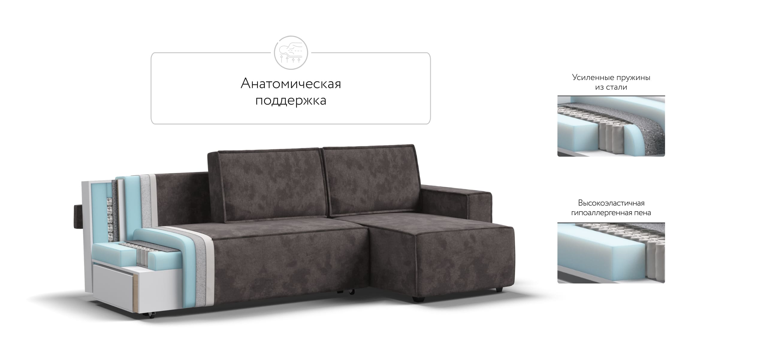 Угловой диван NORD 2.0 с мягкими широкими подлокотниками, строгой симметрией и минималистичной отделкой идеально дополнит современный интерьер в стиле лофт. Днем Вы с комфортом сможете провести время за просмотром любимого фильма, а ночью трансформировать диван в полноценное спальное место, благодаря анатомическому матрасу и надежному механизму еврокнижка. Диван имеет дизайн 360, что позволит расположить его в любой части гостиной. Универсальный угол позволит Вам самостоятельно определить положение угла при сборке.