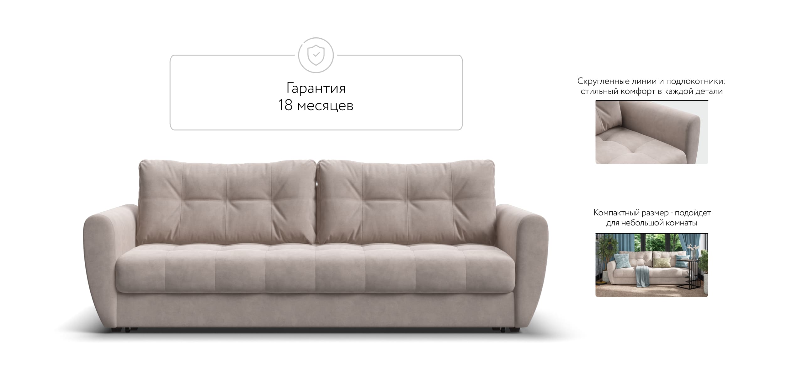 Диван Престон с закругленными подлокотниками идеально подойдет для гостиной или спальни, благодаря простому, минималистичному дизайну и классической расцветке. Мягкие приспинные подушки и независимый пружинный блок в основании обеспечат комфорт во время сидения. Надежный механизм еврокнижка позволит с легкостью трансформировать диван в ровное спальное место.