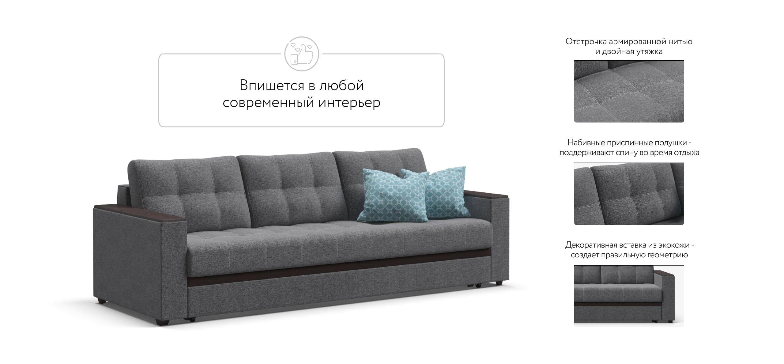 Элегантная прострочка на посадочной части украшает внешний вид дивана и дает возможность сохранить обивку от растяжения.
