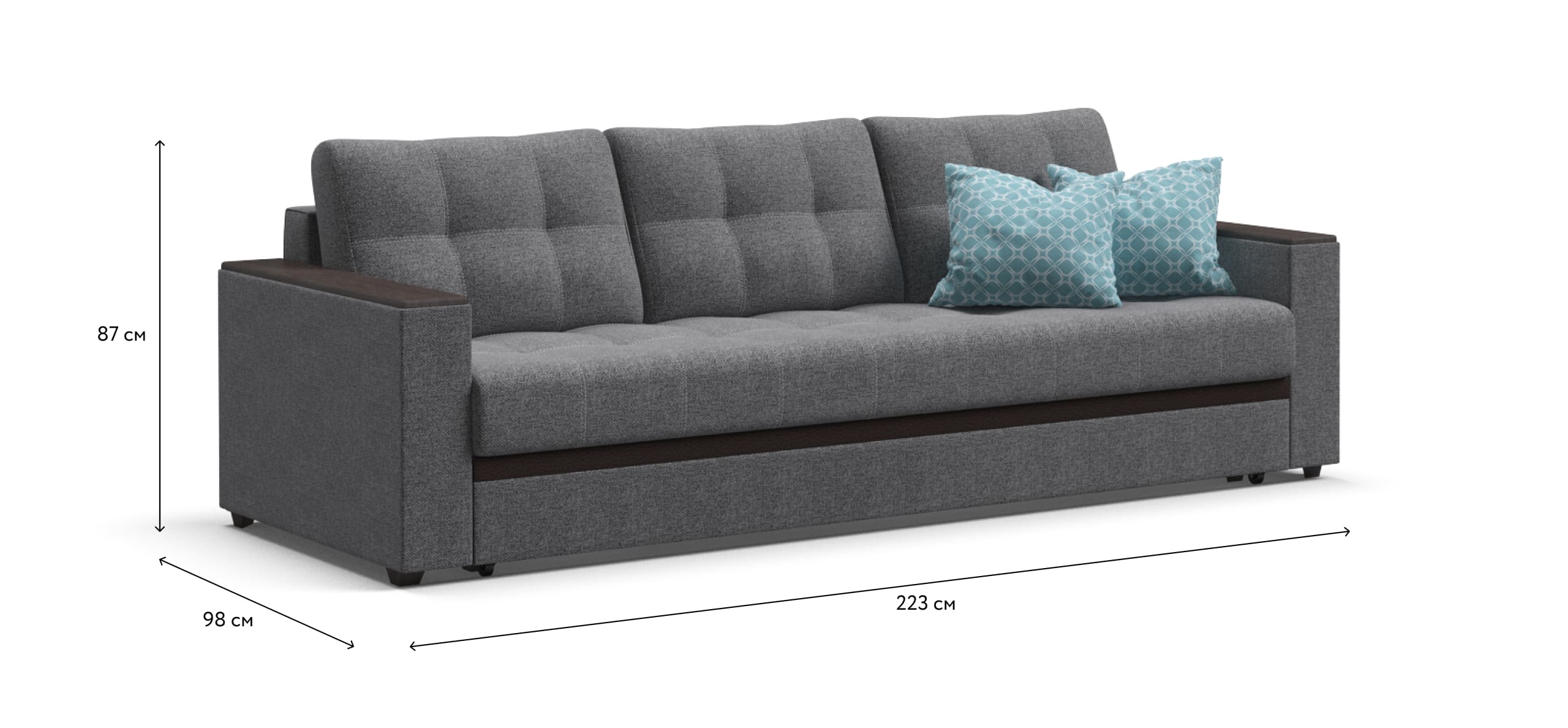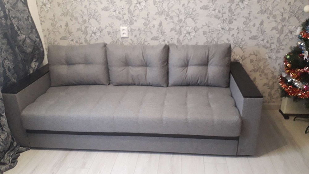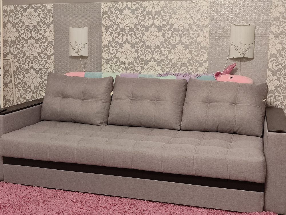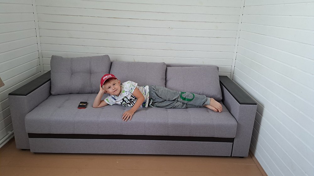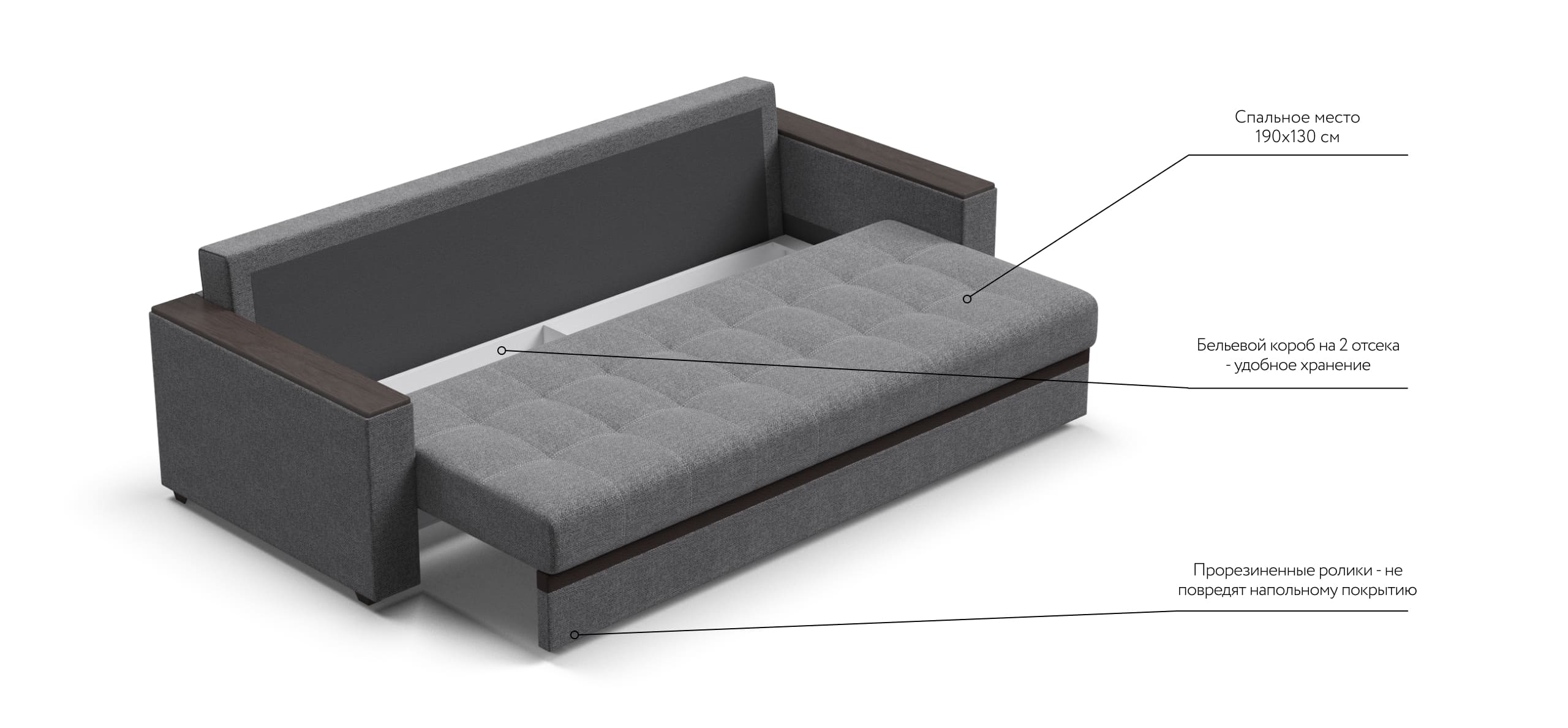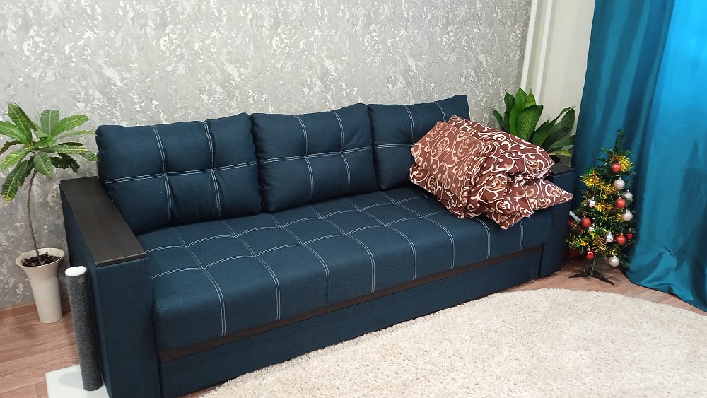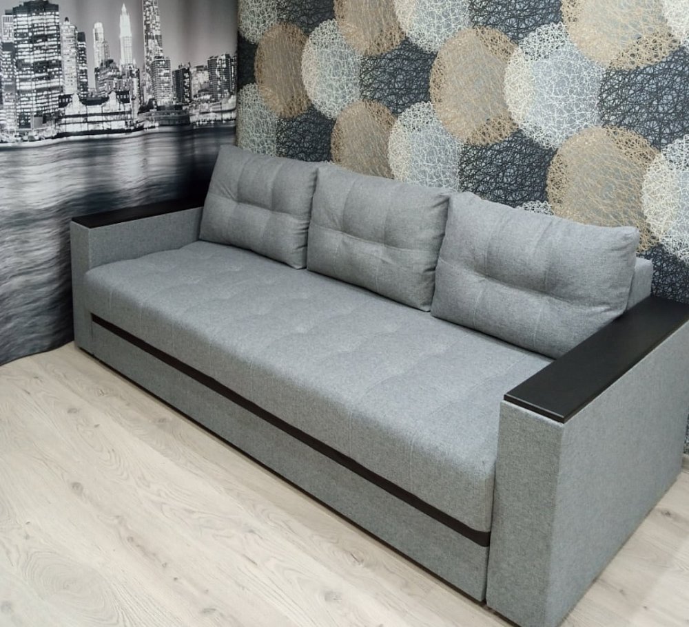 Оптимальный для ежедневного использования механизм трансформации Еврокнижка, за считанные секунды, без малейших усилий поможет превратить диван в полноценную кровать с высоким и ровным спальным местом. Диван имеет удобные подлокотники из МДФ, которые можно использовать в качестве столика.