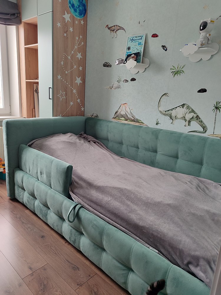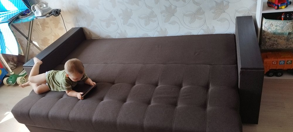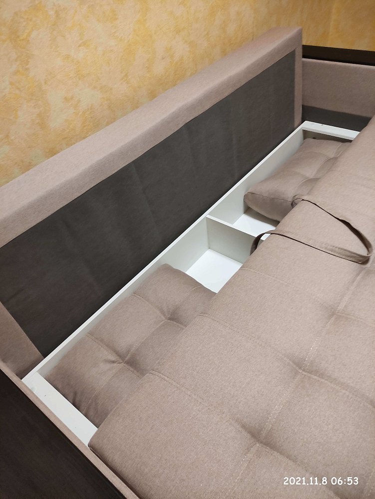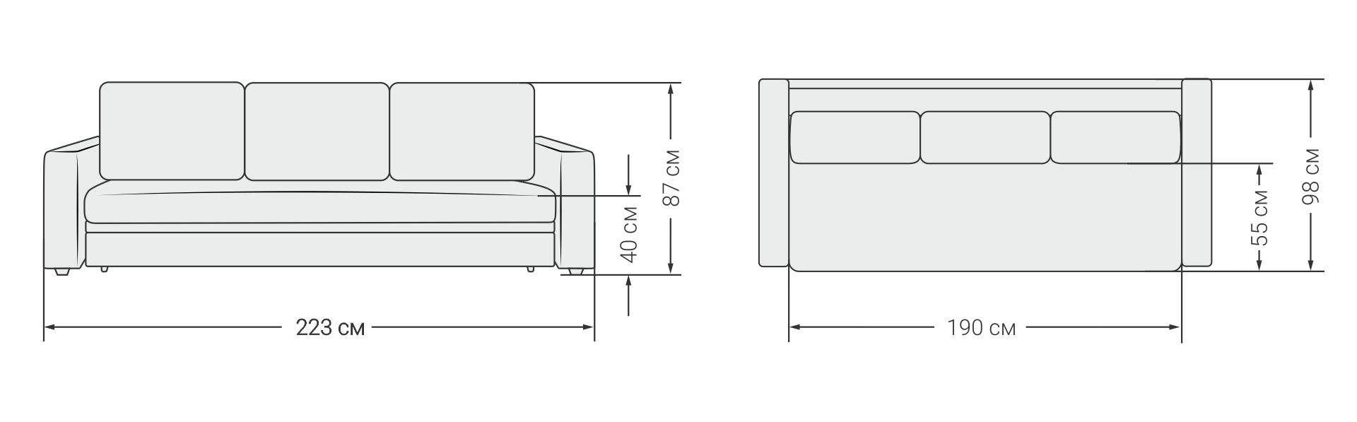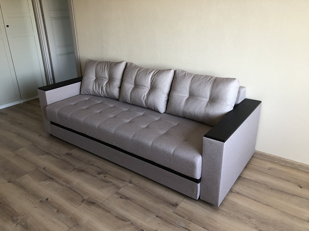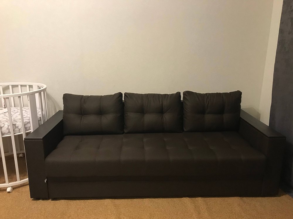 Оптимальный для ежедневного использования механизм трансформации Еврокнижка, за считанные секунды, без малейших усилий поможет превратить диван в полноценную кровать с высоким и ровным спальным местом. Диван имеет удобные подлокотники из МДФ, которые можно использовать в качестве столика.