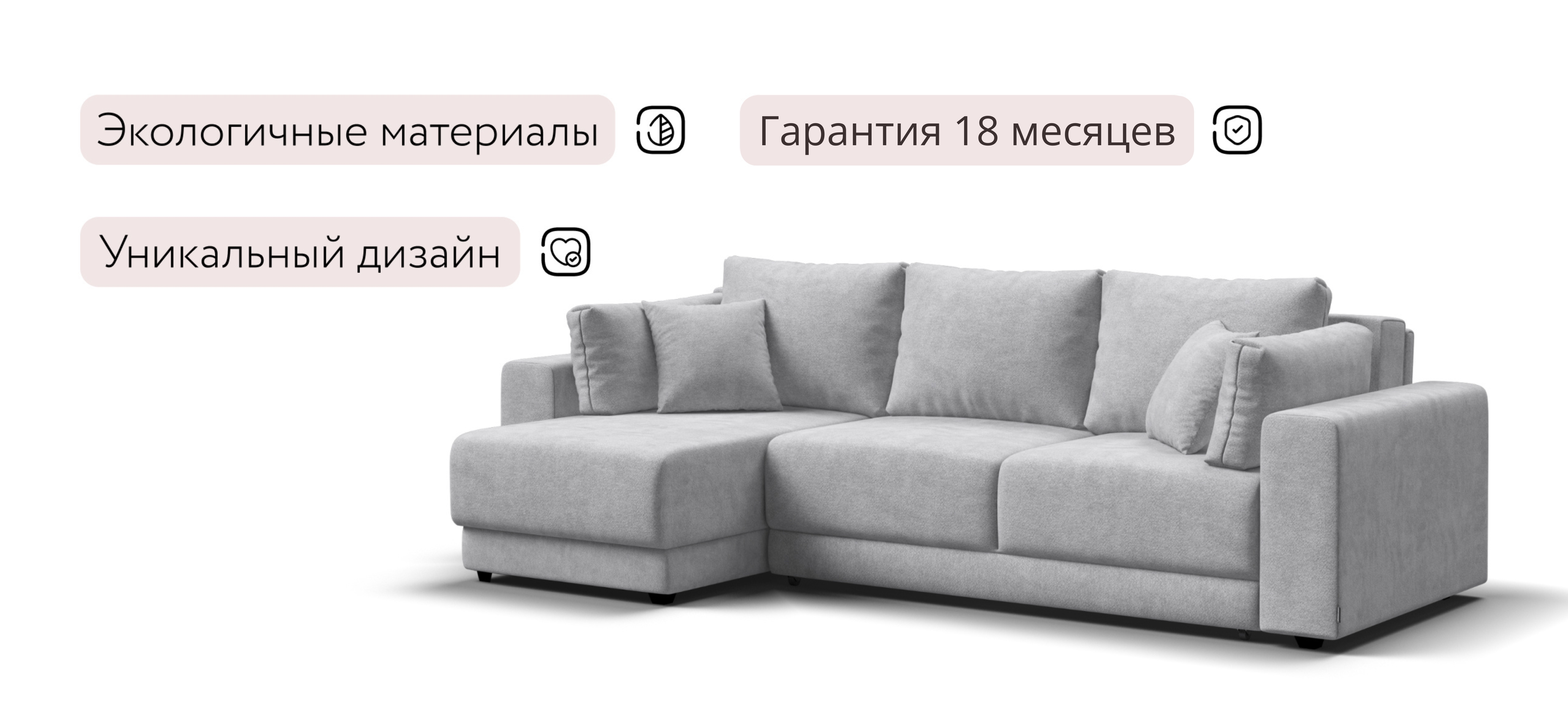 Угловой диван Босс Прайм ХЛ - это сочетание современного дизайна и продуманной эргономики, создающее уютную атмосферу в любом интерьере. Визуально разделённое сиденье, широкие мягкие подлокотники и пышные подушки разного размера обеспечивают не только эстетическую привлекательность, но и максимальный комфорт.