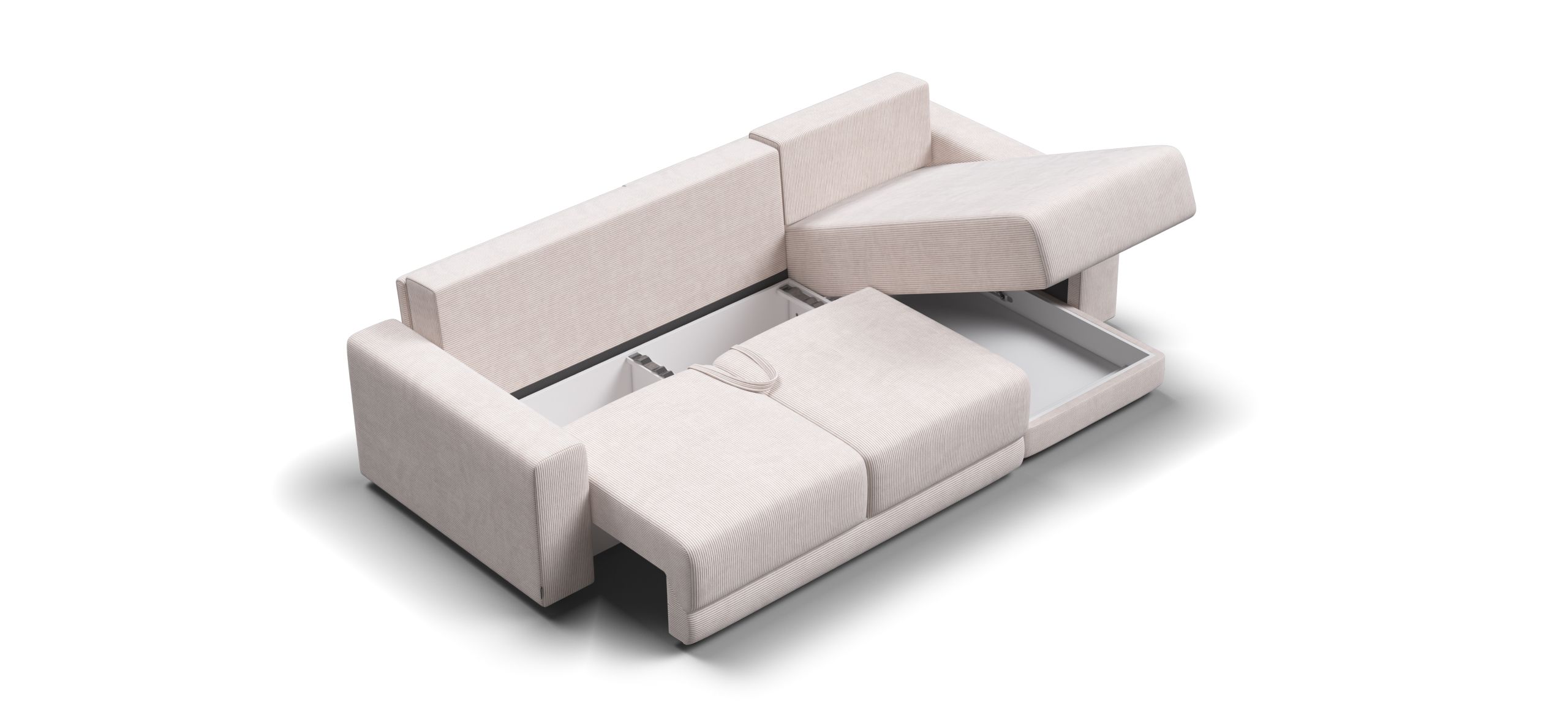 Бельевой короб на 175 л под посадочной частью и дополнительный в оттоманке на 118 л - удобное и безопасное хранение постельного белья