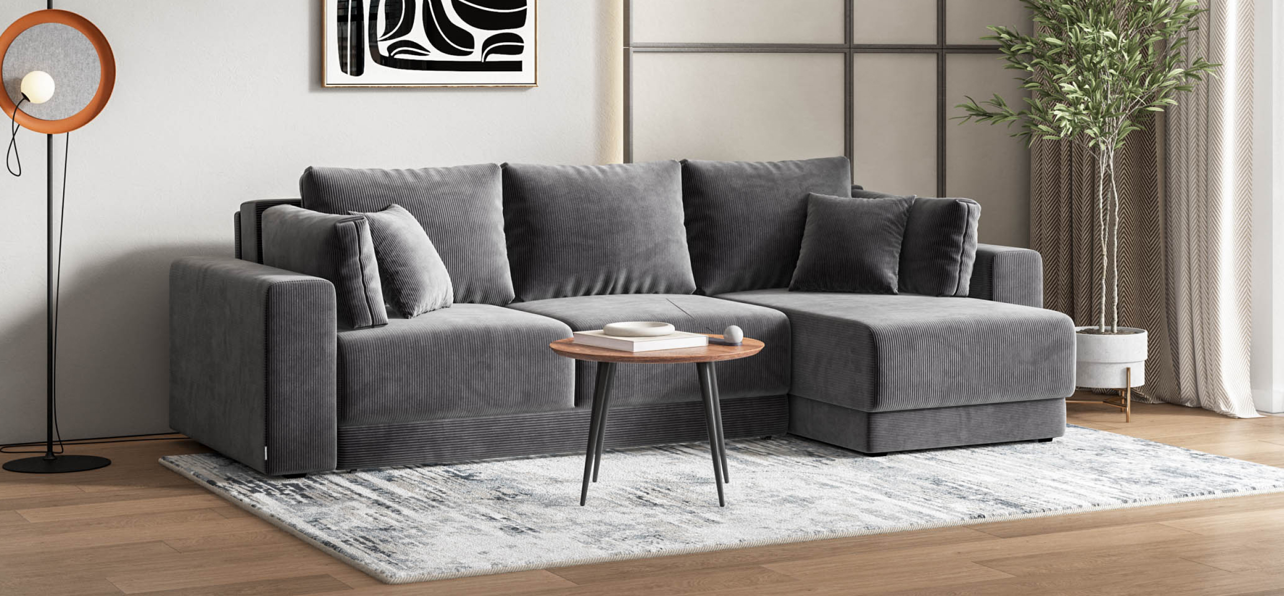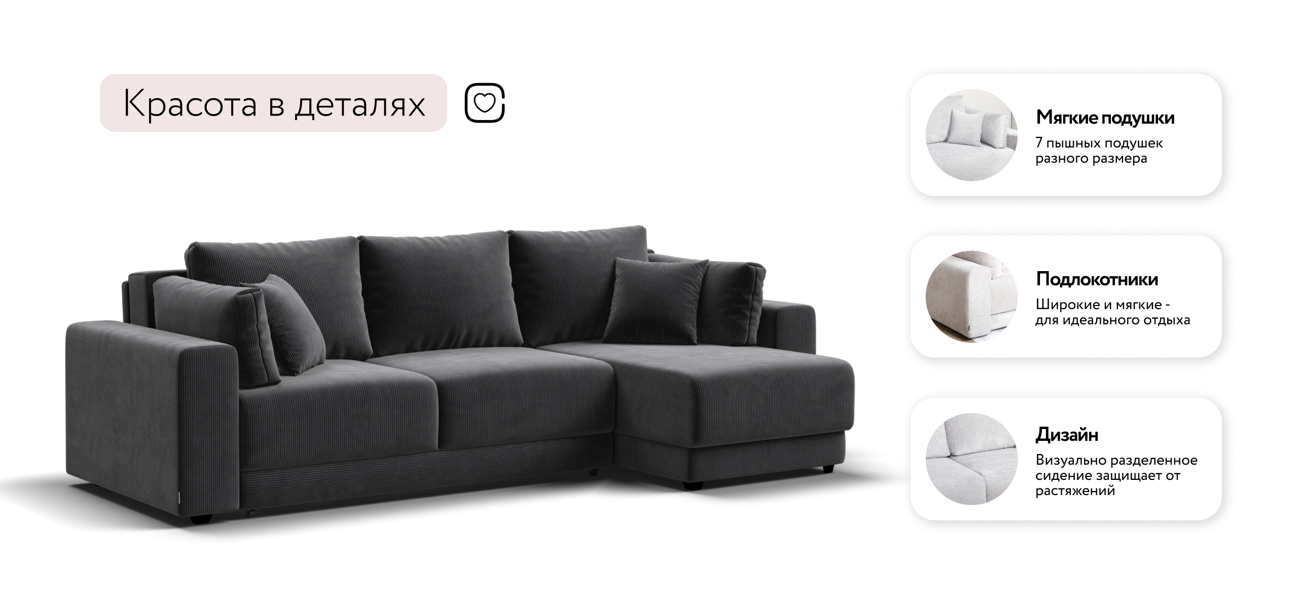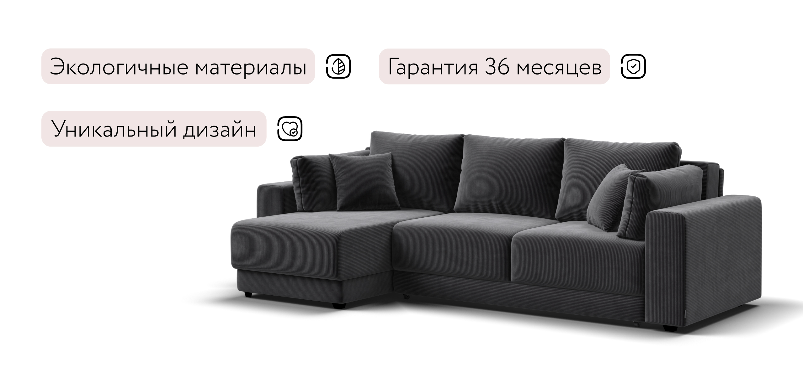 Угловой диван Босс Прайм ХЛ - это сочетание современного дизайна и продуманной эргономики, создающее уютную атмосферу в любом интерьере. Визуально разделённое сиденье, широкие мягкие подлокотники и пышные подушки разного размера обеспечивают не только эстетическую привлекательность, но и максимальный комфорт.