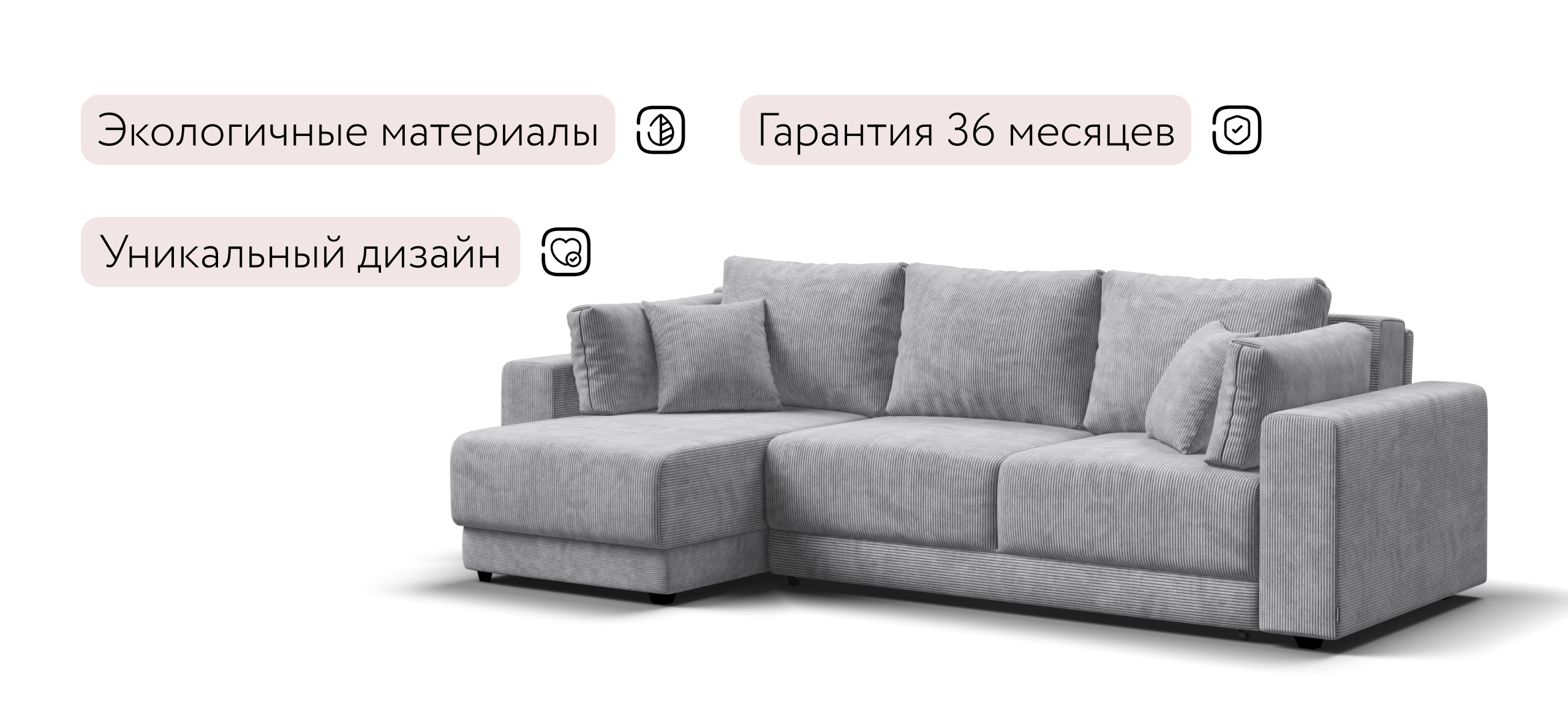 Угловой диван Босс Прайм ХЛ - это сочетание современного дизайна и продуманной эргономики, создающее уютную атмосферу в любом интерьере. Визуально разделённое сиденье, широкие мягкие подлокотники и пышные подушки разного размера обеспечивают не только эстетическую привлекательность, но и максимальный комфорт.