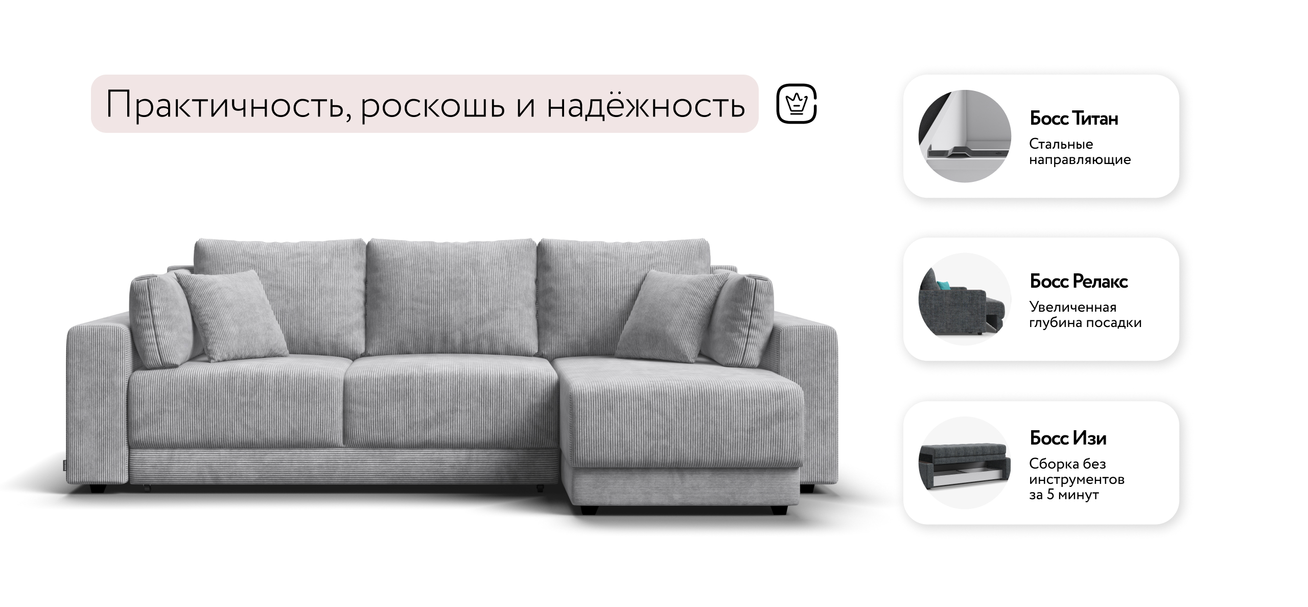 Угловой диван Босс Прайм ХЛ — идеальное решение для тех, кто ценит стиль, надёжность и уют в каждой детали.