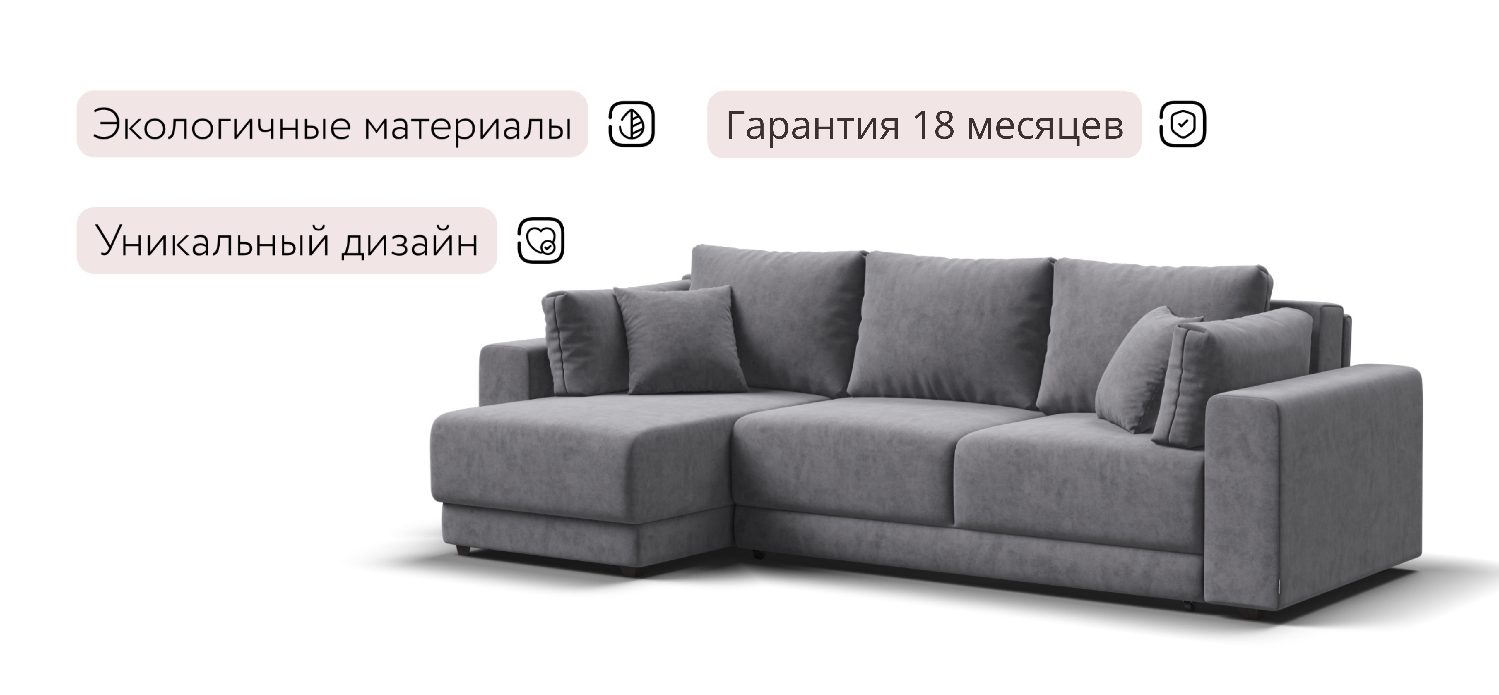 Угловой диван Босс Прайм ХЛ - это сочетание современного дизайна и продуманной эргономики, создающее уютную атмосферу в любом интерьере. Визуально разделённое сиденье, широкие мягкие подлокотники и пышные подушки разного размера обеспечивают не только эстетическую привлекательность, но и максимальный комфорт.​