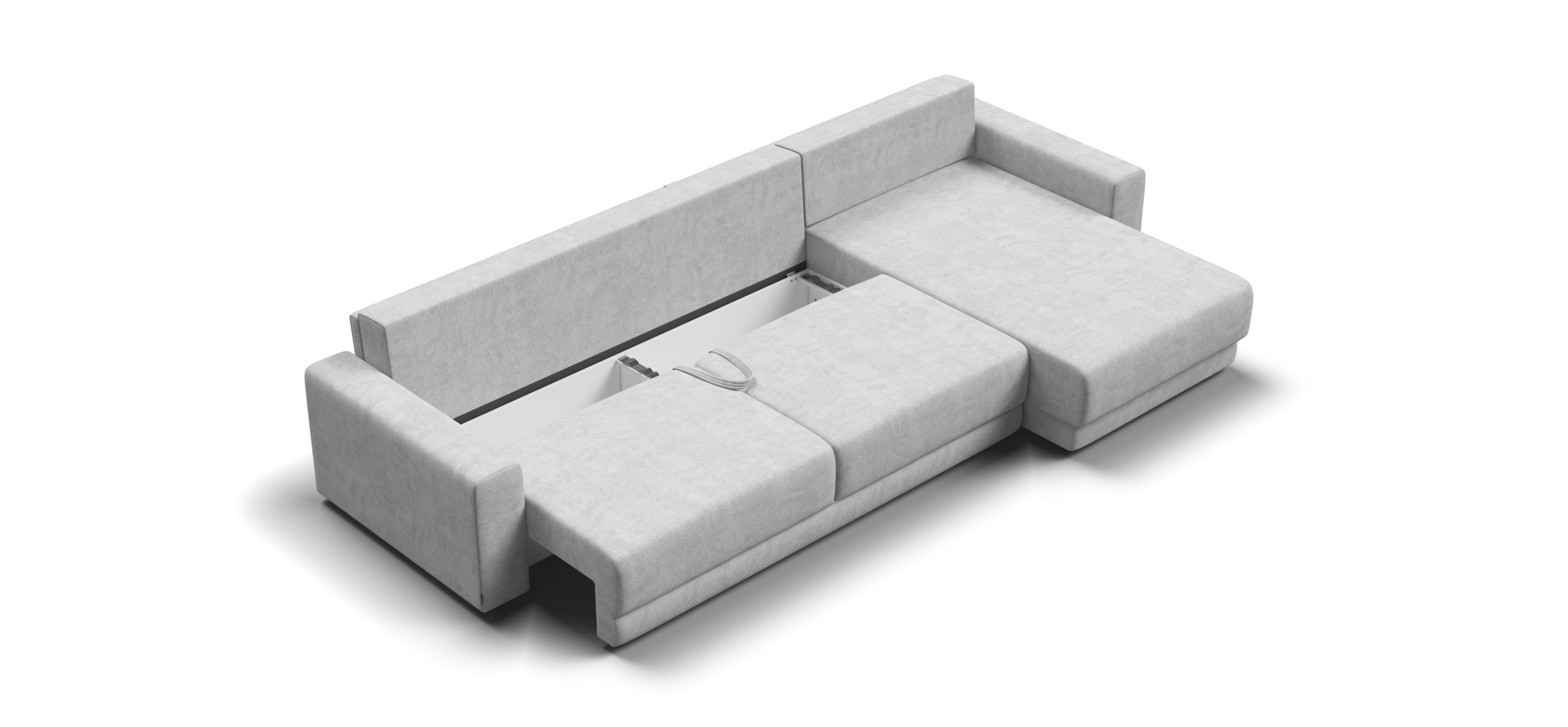 Оснащённый независимым пружинным блоком и высокоэластичной пеной Эластик Фоам с дополнительным слоем периотека, диван гарантирует анатомическую поддержку и комфортный сон. Простой и надёжный механизм трансформации «еврокнижка» позволяет легко преобразовать диван в просторное спальное место. Универсальный угол позволит Вам переставить оттоманку и поменять положение угла при необходимости.