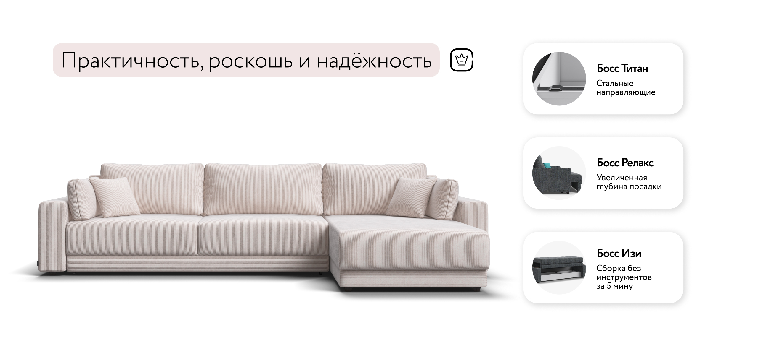 Угловой диван Босс Прайм Макс — идеальное решение для тех, кто ценит стиль, надёжность и уют в каждой детали.