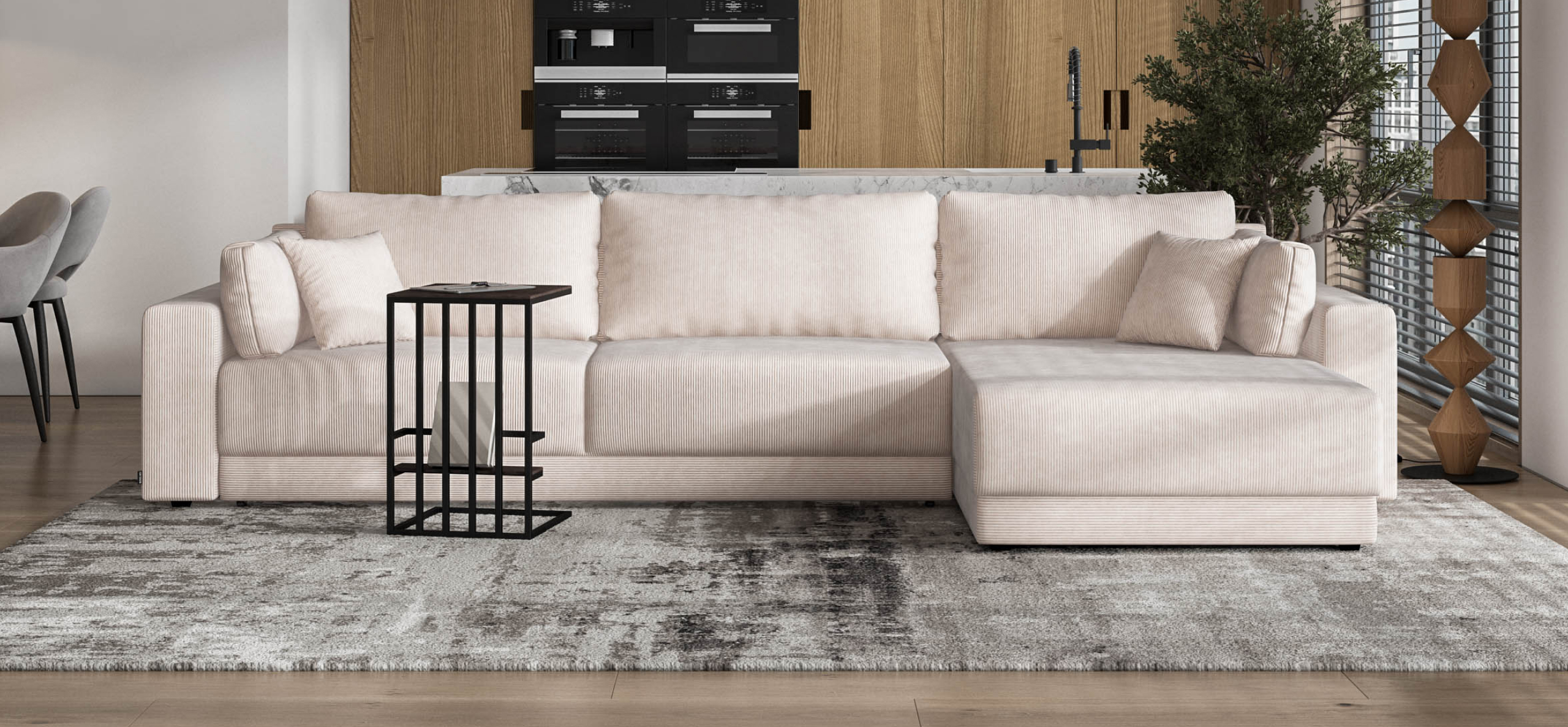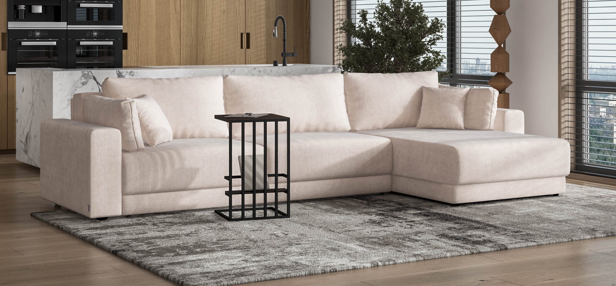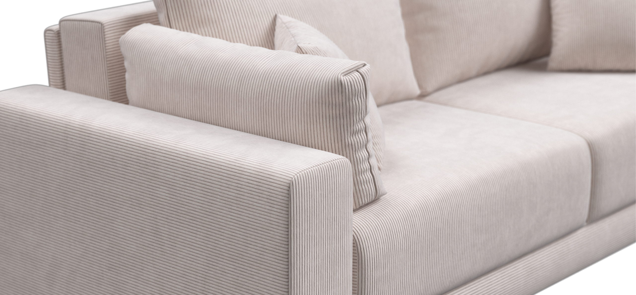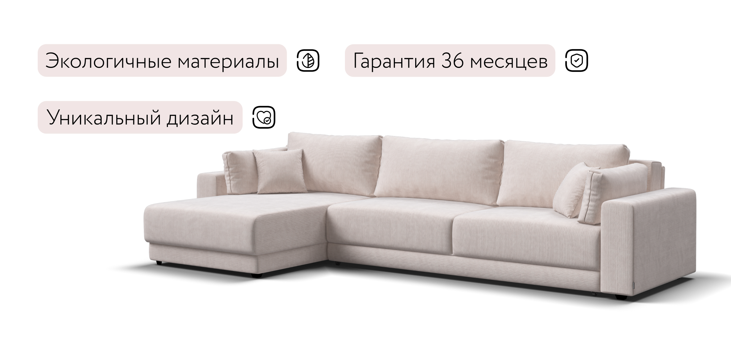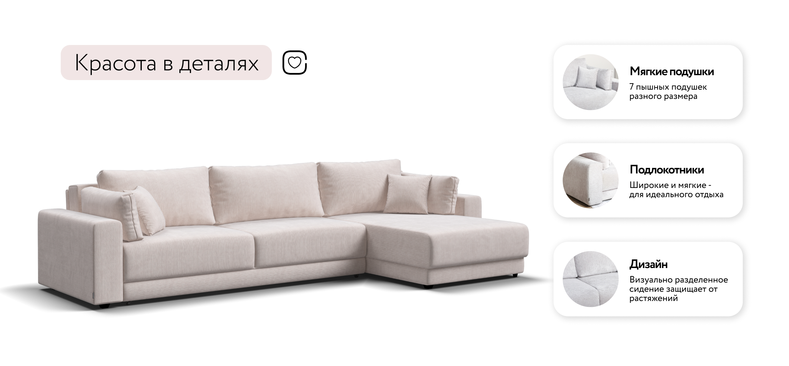 Угловой диван Босс Прайм Макс - это сочетание современного дизайна и продуманной эргономики, создающее уютную атмосферу в любом интерьере. Визуально разделённое сиденье, широкие мягкие подлокотники и пышные подушки разного размера обеспечивают не только эстетическую привлекательность, но и максимальный комфорт.