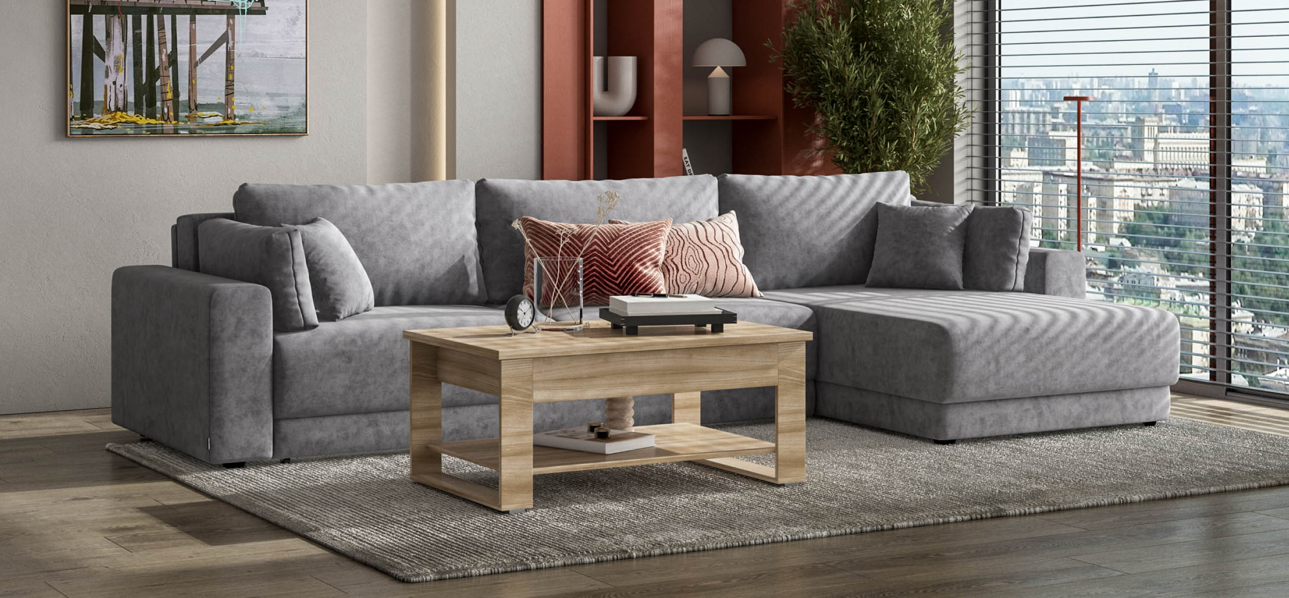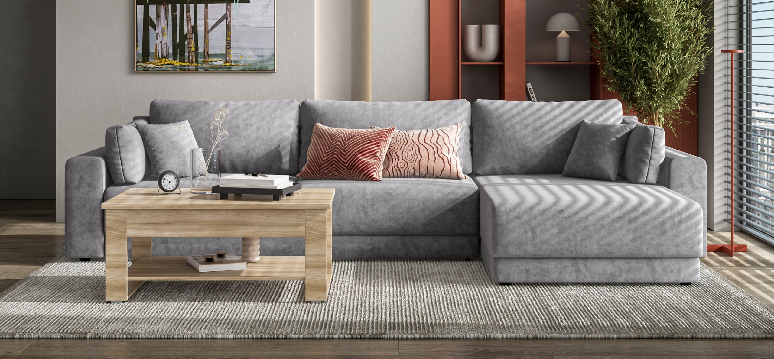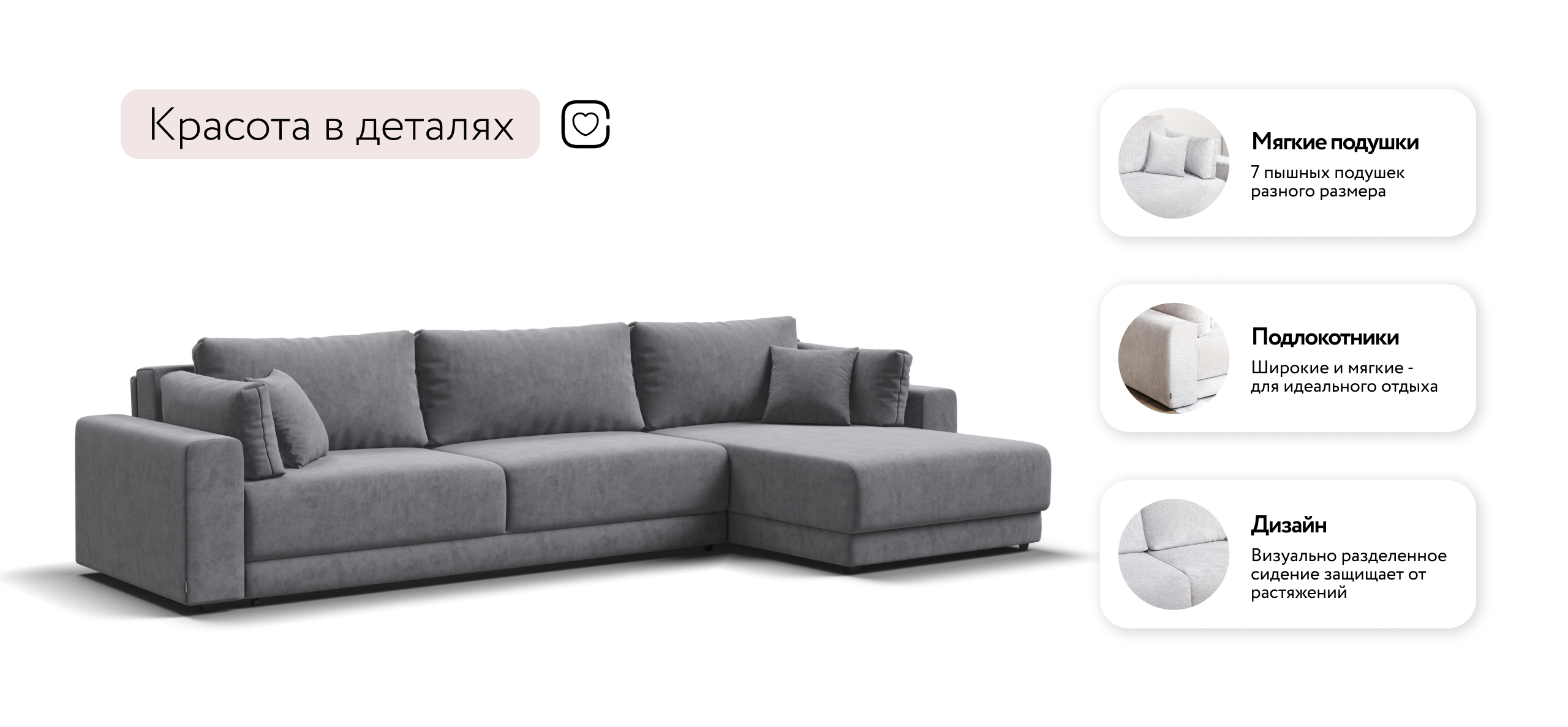 Угловой диван Босс Прайм Макс - это сочетание современного дизайна и продуманной эргономики, создающее уютную атмосферу в любом интерьере. Визуально разделённое сиденье, широкие мягкие подлокотники и пышные подушки разного размера обеспечивают не только эстетическую привлекательность, но и максимальный комфорт.