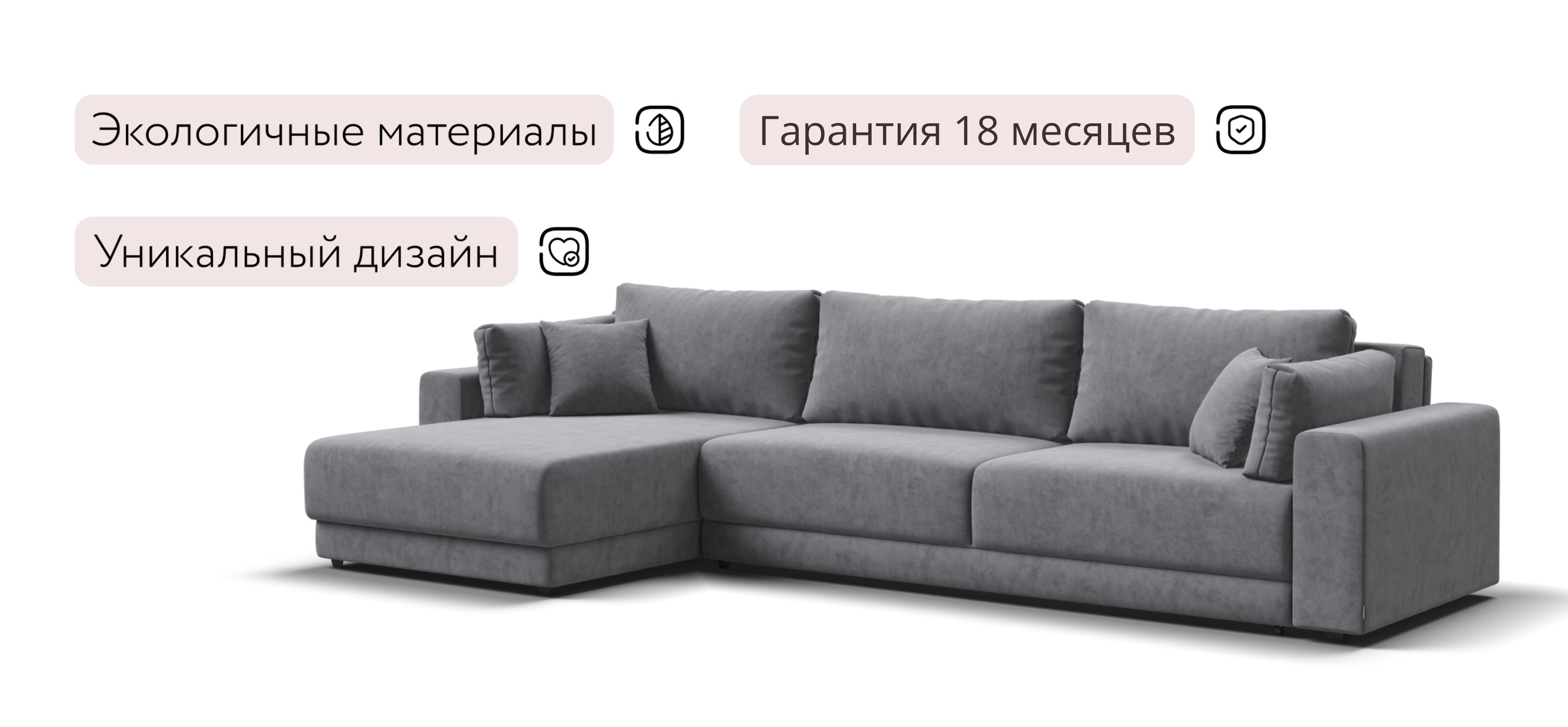 Угловой диван Босс Прайм Макс - это сочетание современного дизайна и продуманной эргономики, создающее уютную атмосферу в любом интерьере. Визуально разделённое сиденье, широкие мягкие подлокотники и пышные подушки разного размера обеспечивают не только эстетическую привлекательность, но и максимальный комфорт.