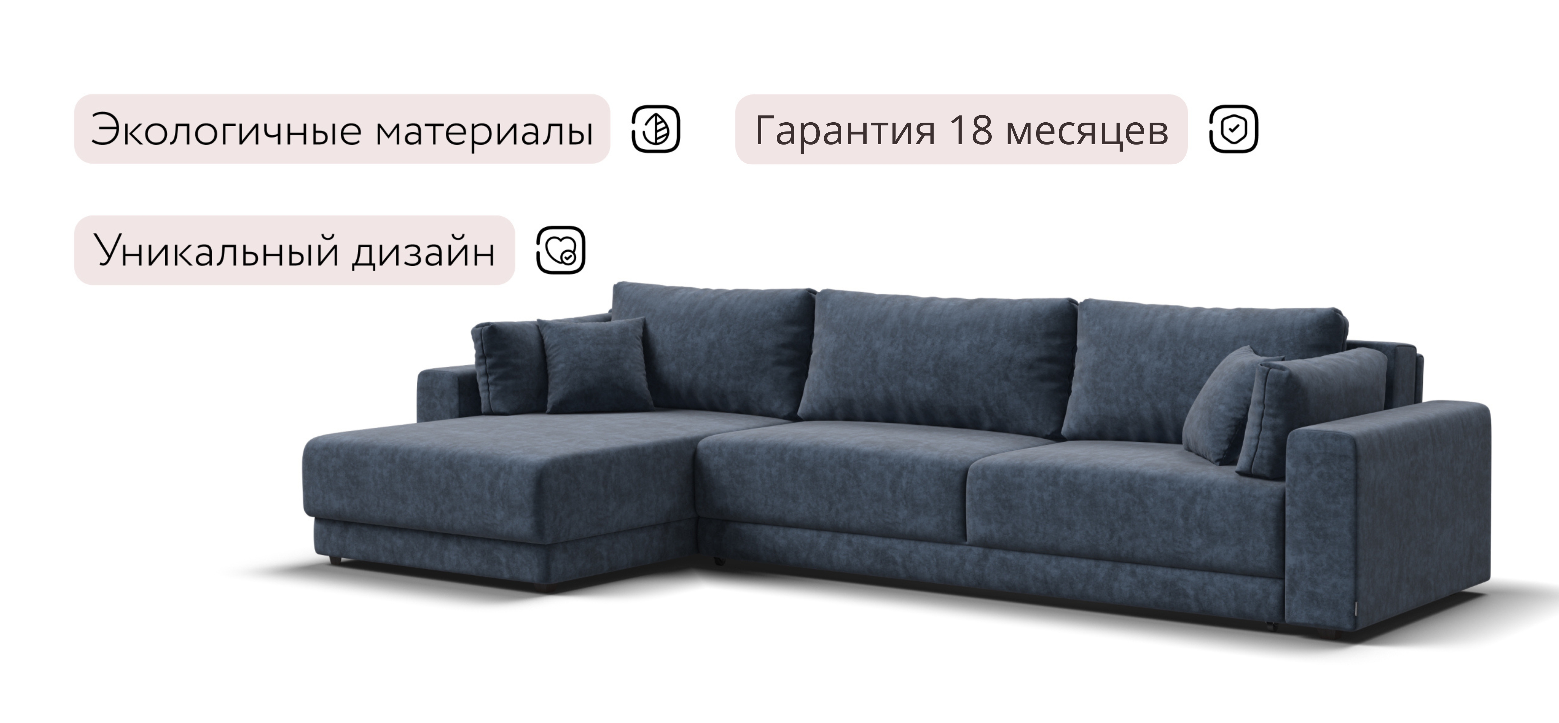 Угловой диван Босс Прайм Макс - это сочетание современного дизайна и продуманной эргономики, создающее уютную атмосферу в любом интерьере. Визуально разделённое сиденье, широкие мягкие подлокотники и пышные подушки разного размера обеспечивают не только эстетическую привлекательность, но и максимальный комфорт.​