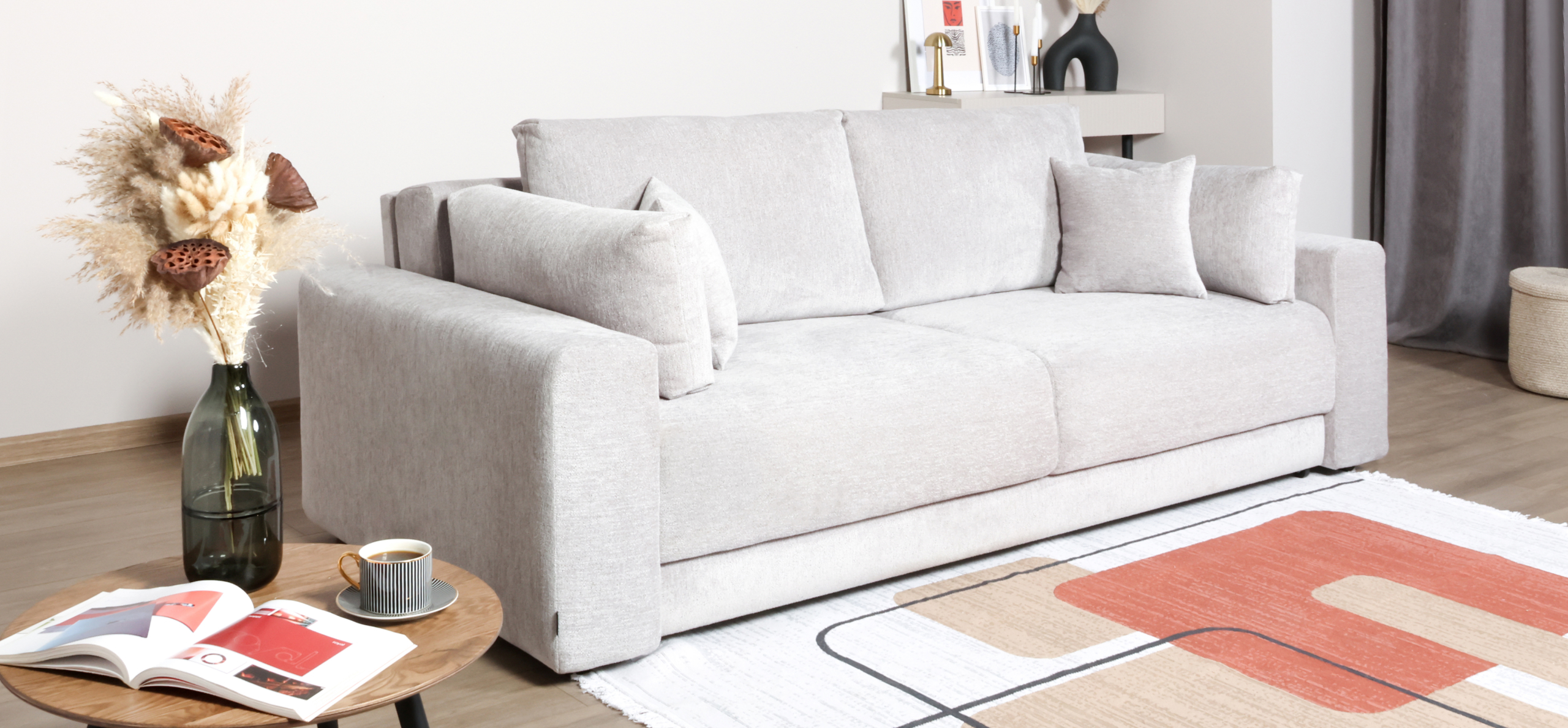 Оснащённый независимым пружинным блоком и высокоэластичной пеной Эластик Фоам с дополнительным слоем периотека, диван гарантирует анатомическую поддержку и комфортный сон. Простой и надёжный механизм трансформации «еврокнижка» позволяет легко преобразовать диван в просторное спальное место.