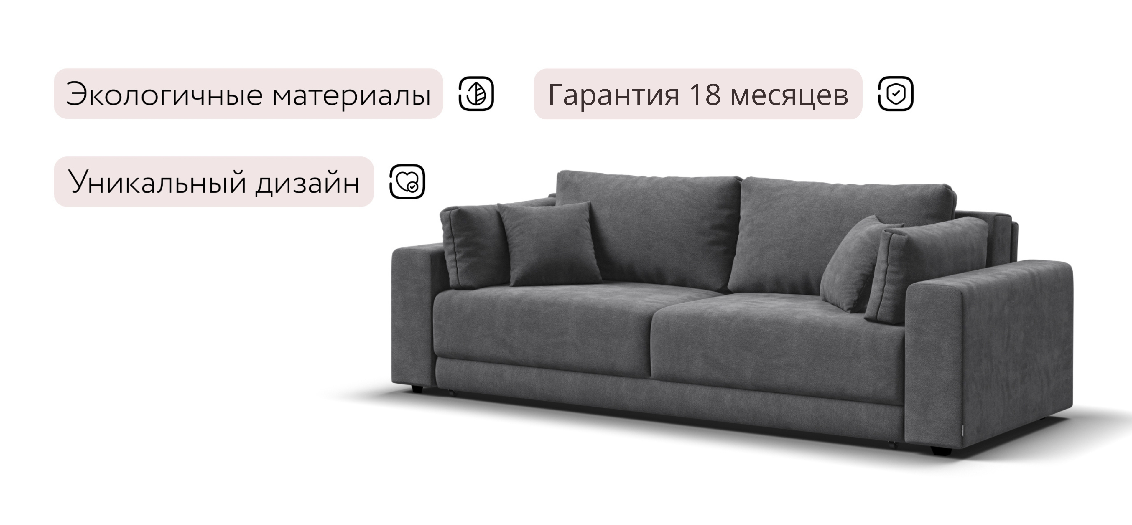 Босс Прайм — это сочетание современного дизайна и продуманной эргономики, создающее уютную атмосферу в любом интерьере. Визуально разделённое сиденье, широкие мягкие подлокотники и пышные подушки разного размера обеспечивают не только эстетическую привлекательность, но и максимальный комфорт.​