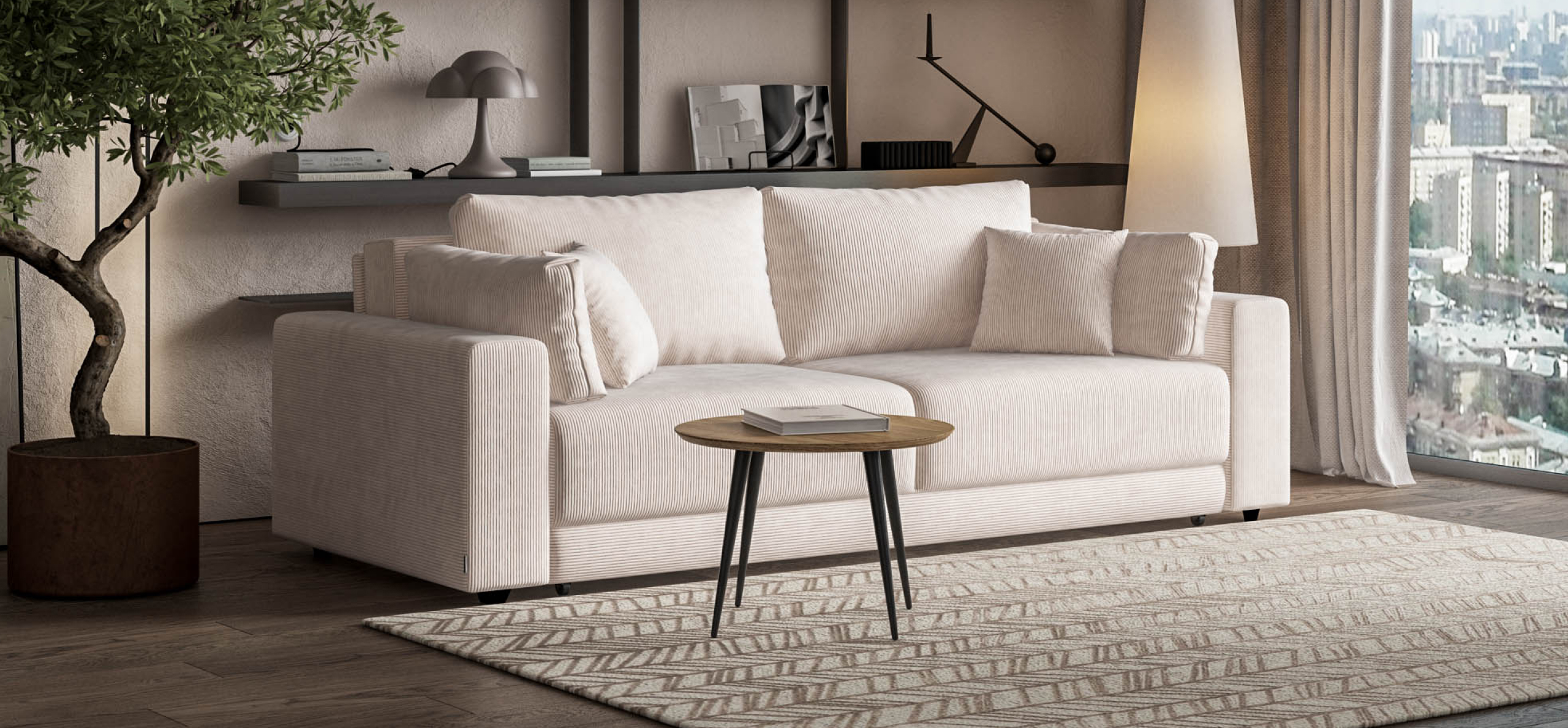 Простой и надежный механизм еврокнижка позволяет ставить диван вплотную к стене