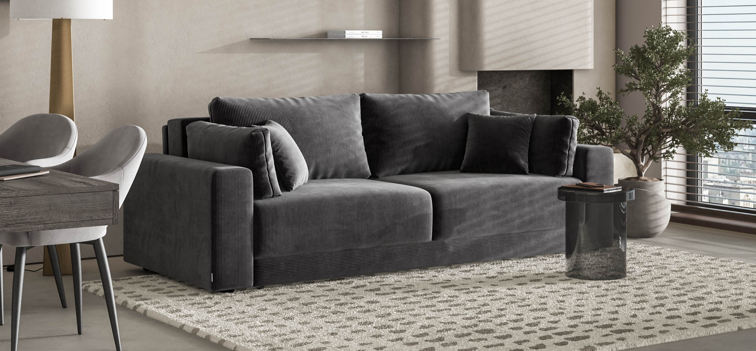 Простой и надежный механизм еврокнижка позволяет ставить диван вплотную к стене