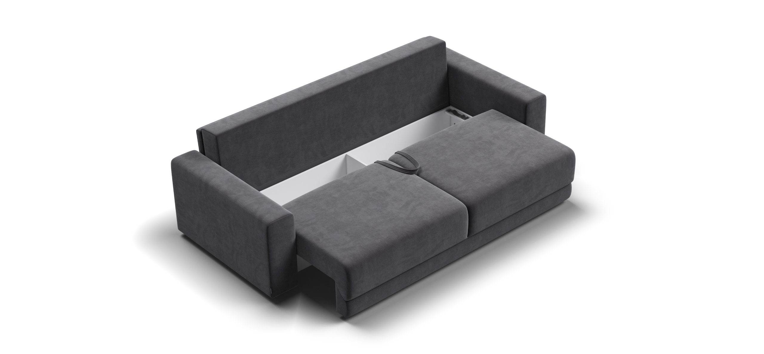 Оснащённый независимым пружинным блоком и высокоэластичной пеной Эластик Фоам с дополнительным слоем периотека, диван гарантирует анатомическую поддержку и комфортный сон. Простой и надёжный механизм трансформации «еврокнижка» позволяет легко преобразовать диван в просторное спальное место.