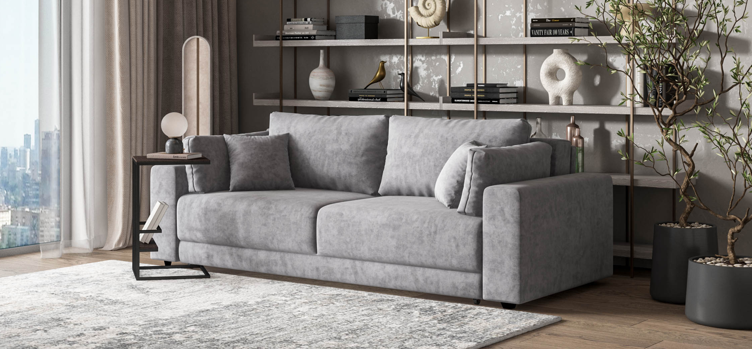 Простой и надежный механизм еврокнижка позволяет ставить диван вплотную к стене