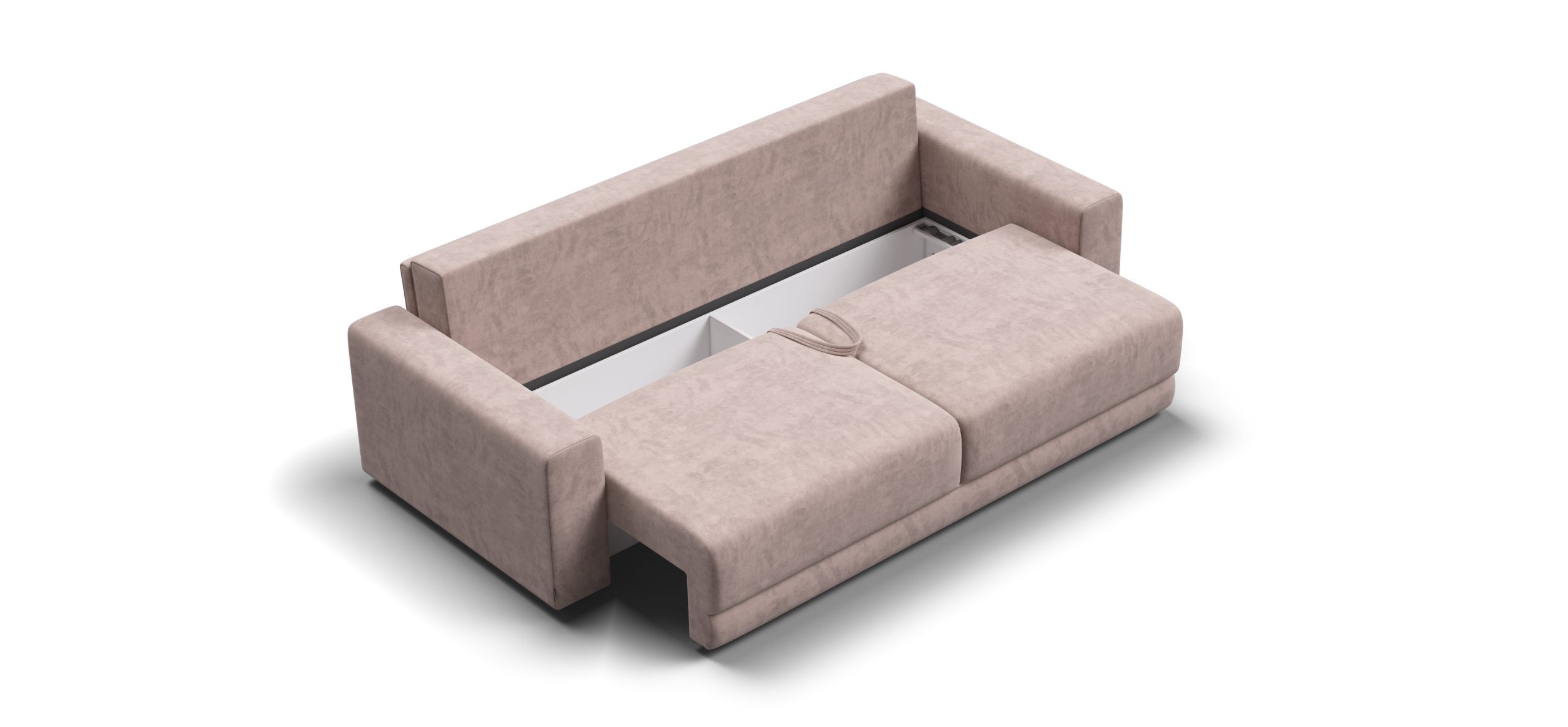 Оснащённый независимым пружинным блоком и высокоэластичной пеной Эластик Фоам с дополнительным слоем периотека, диван гарантирует анатомическую поддержку и комфортный сон. Простой и надёжный механизм трансформации «еврокнижка» позволяет легко преобразовать диван в просторное спальное место.