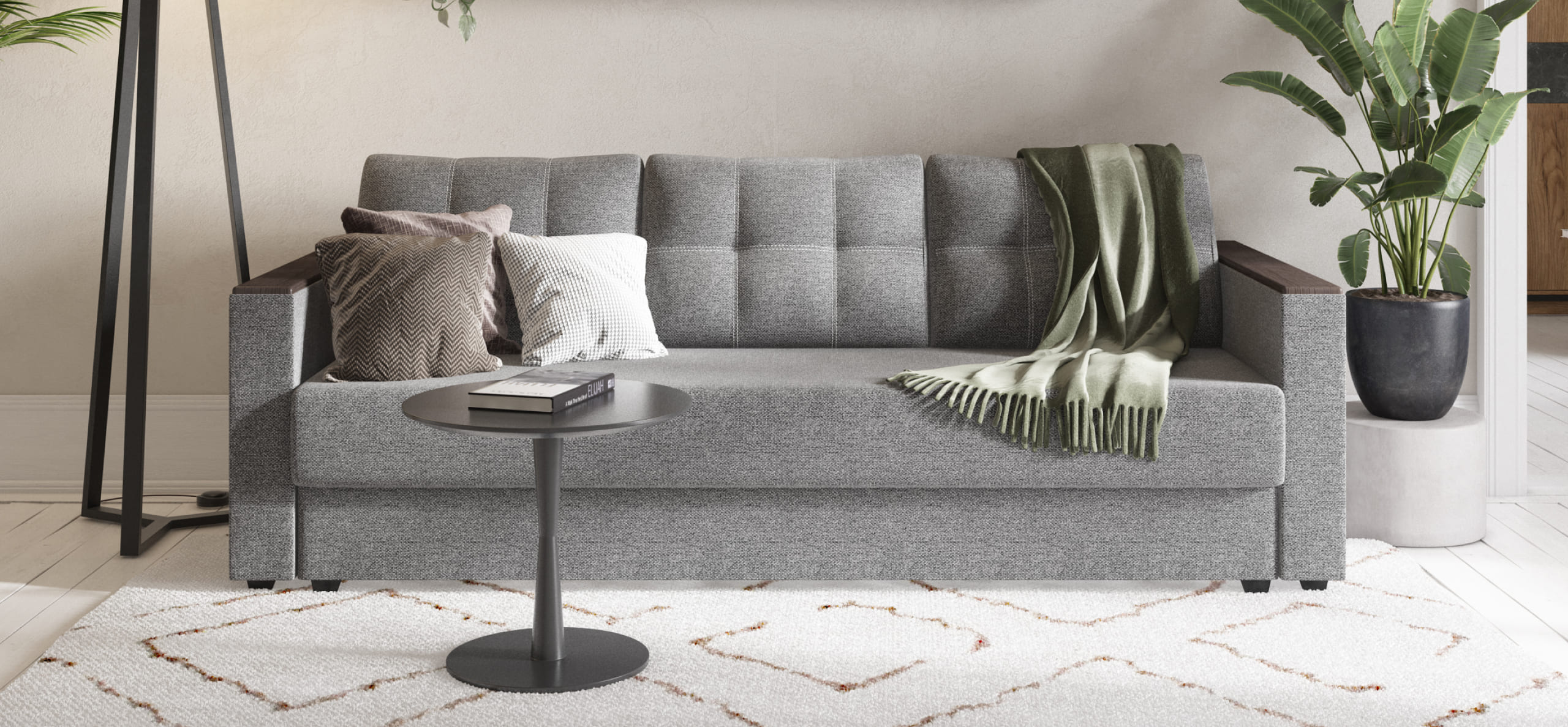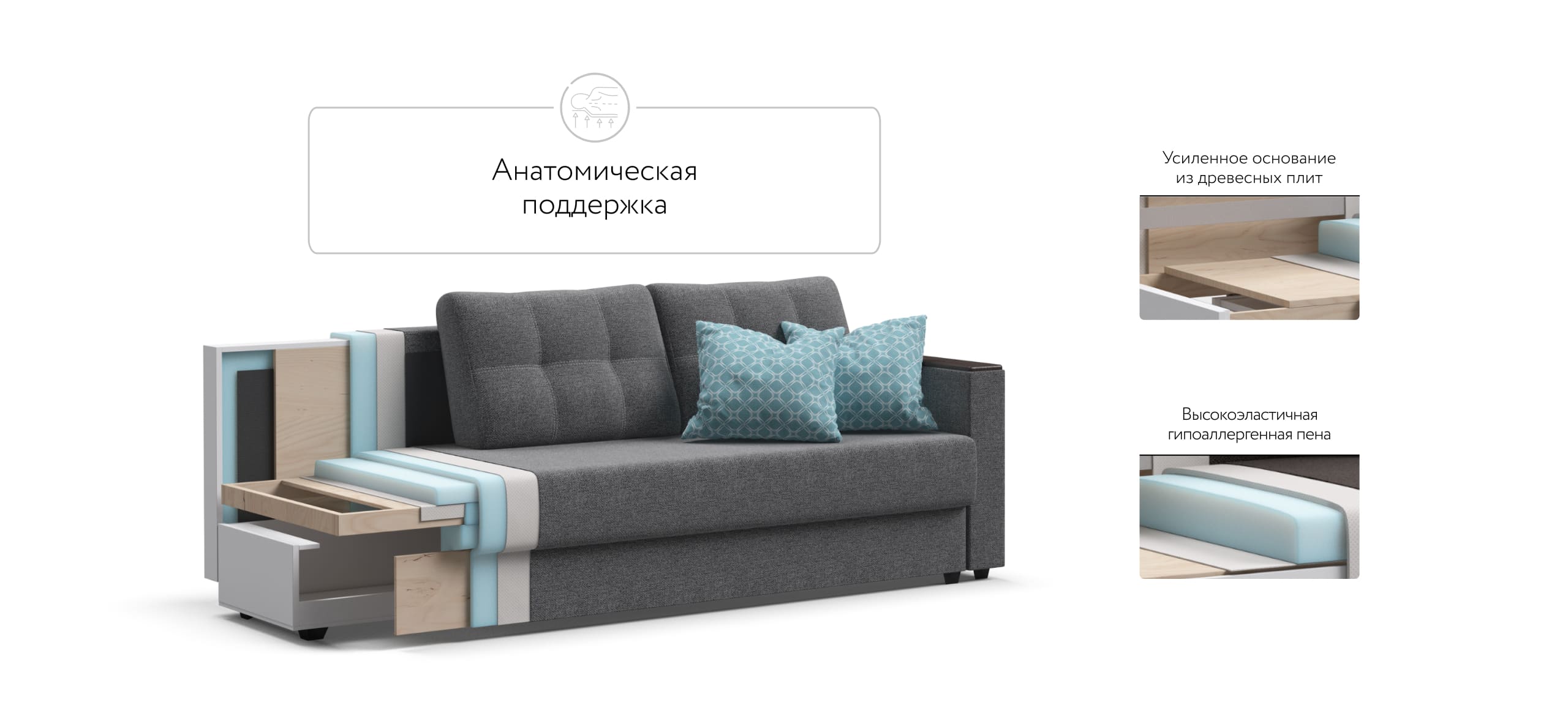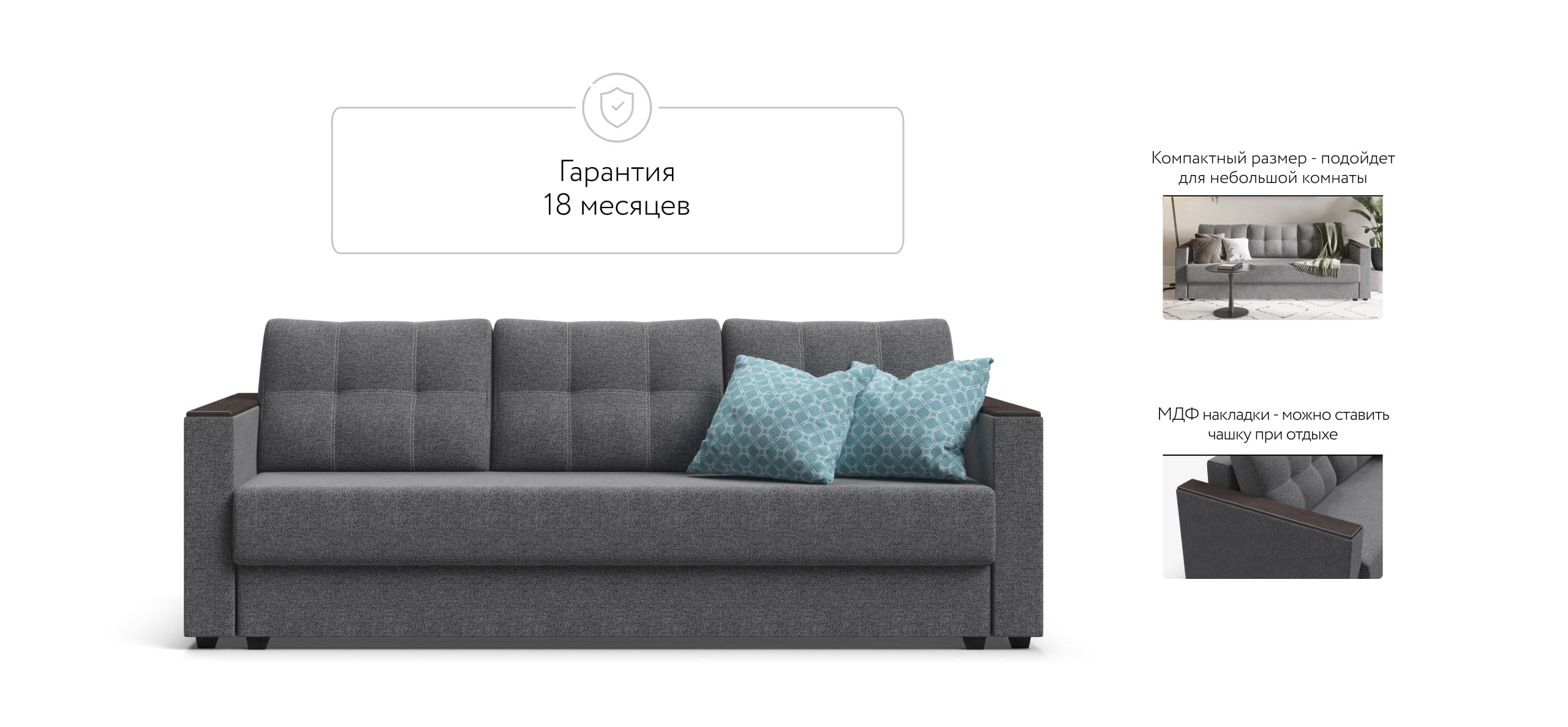 Диван Атланта, благодаря небольшим габаритам подойдет как для маленькой комнаты, так и для дачи. Оптимальный для ежедневного использования механизм трансформации Еврокнижка, за считанные секунды, поможет превратить диван в полноценное спальное место. Диван имеет удобные подлокотники из МДФ, на которые можно поставить чашку при отдыхе. Мягкие приспинные подушки, наполненные холлофайбером и дробленой пеной, обеспечат комфорт во время сидения.