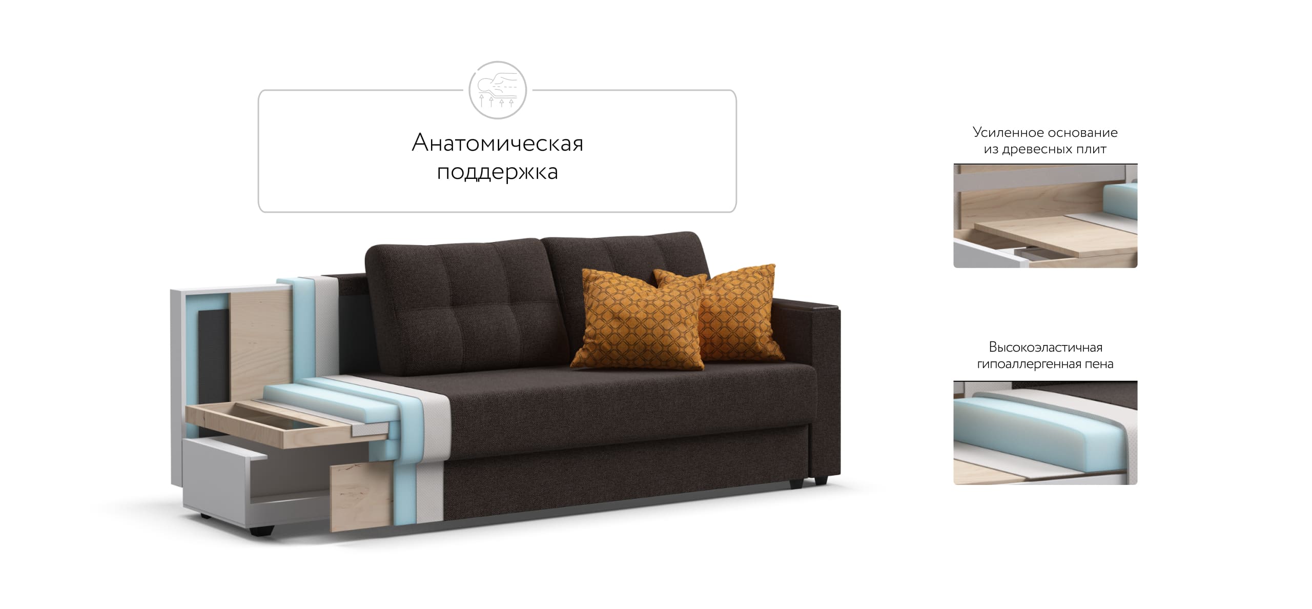 Диван Атланта, благодаря небольшим габаритам подойдет как для маленькой комнаты, так и для дачи. Оптимальный для ежедневного использования механизм трансформации Еврокнижка, за считанные секунды, поможет превратить диван в полноценное спальное место. Диван имеет удобные подлокотники из МДФ, на которые можно поставить чашку при отдыхе. Мягкие приспинные подушки, наполненные холлофайбером и дробленой пеной, обеспечат комфорт во время сидения.