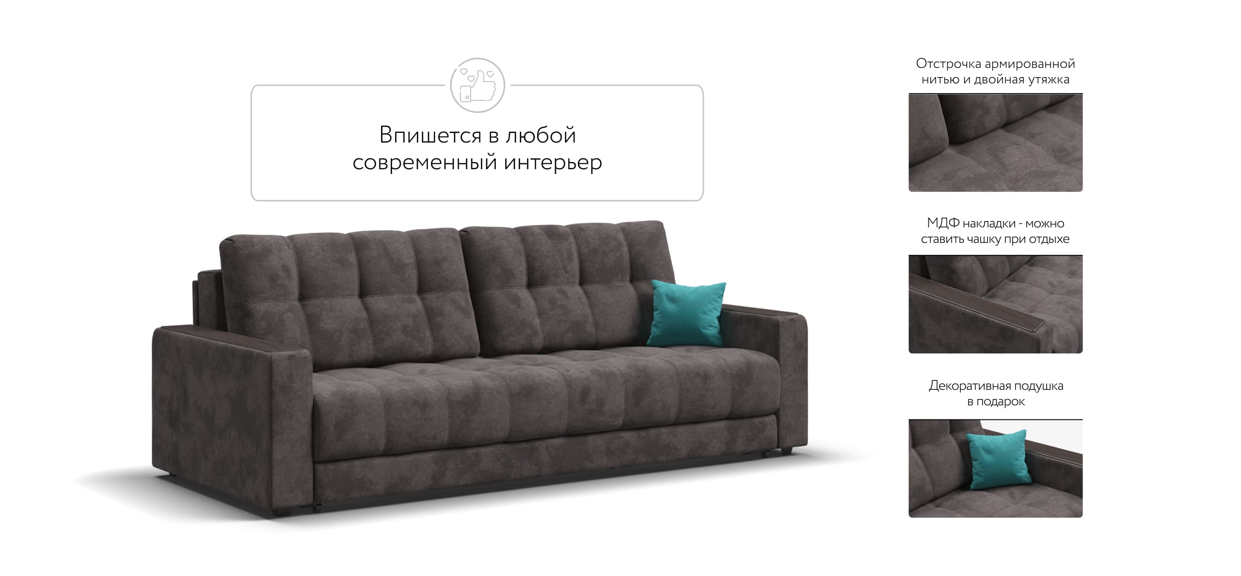 Стильный диван для тех, кто ищет максимальный комфорт. Продуманный до мелочей диван BOSS сочетает в себе надежный каркас, мягкие ткани, многофункциональность и быструю сборку за 1 минуту без инструментов - ощутите комфорт у себя дома!