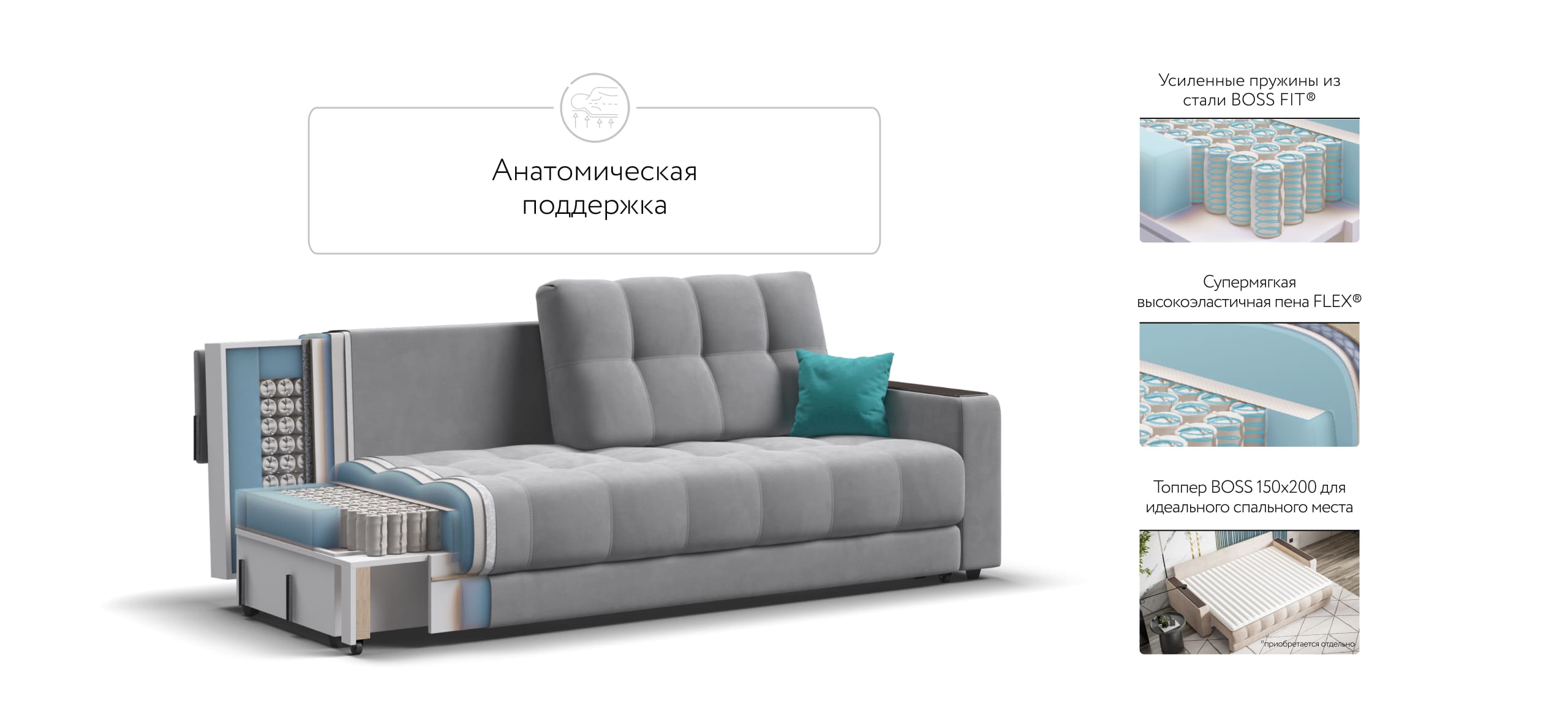 Стильный диван для тех, кто ищет максимальный комфорт. Продуманный до мелочей диван BOSS сочетает в себе надежный каркас, мягкие ткани, многофункциональность и быструю сборку за 1 минуту без инструментов - ощутите комфорт у себя дома!