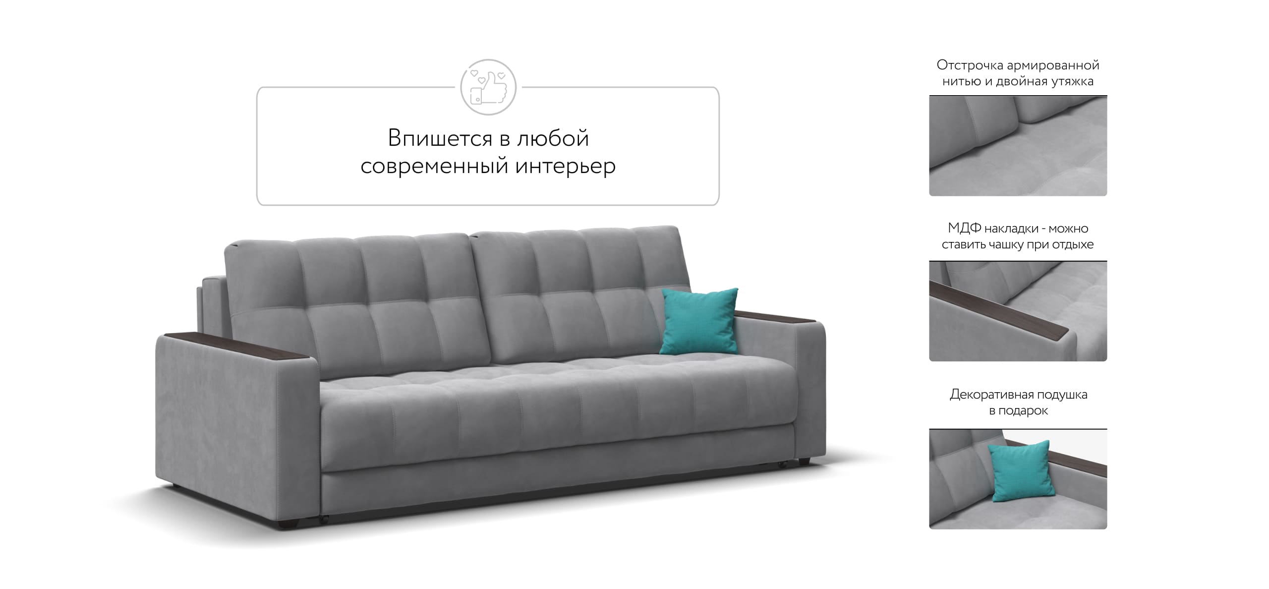 Благодаря дополнительному пуфу, который Вы можете приобрести к нему отдельно, прямой диван с легкостью становится полноценным угловым диваном.