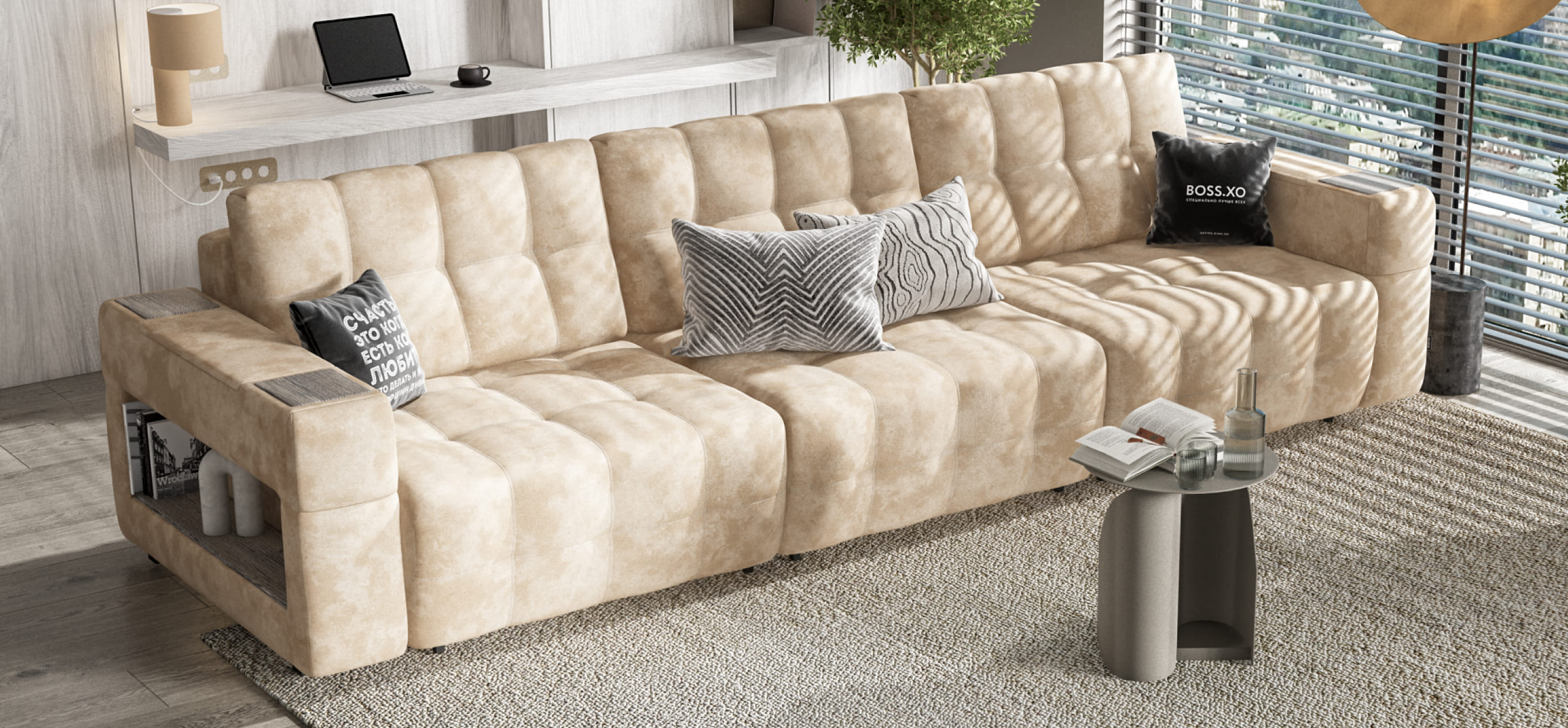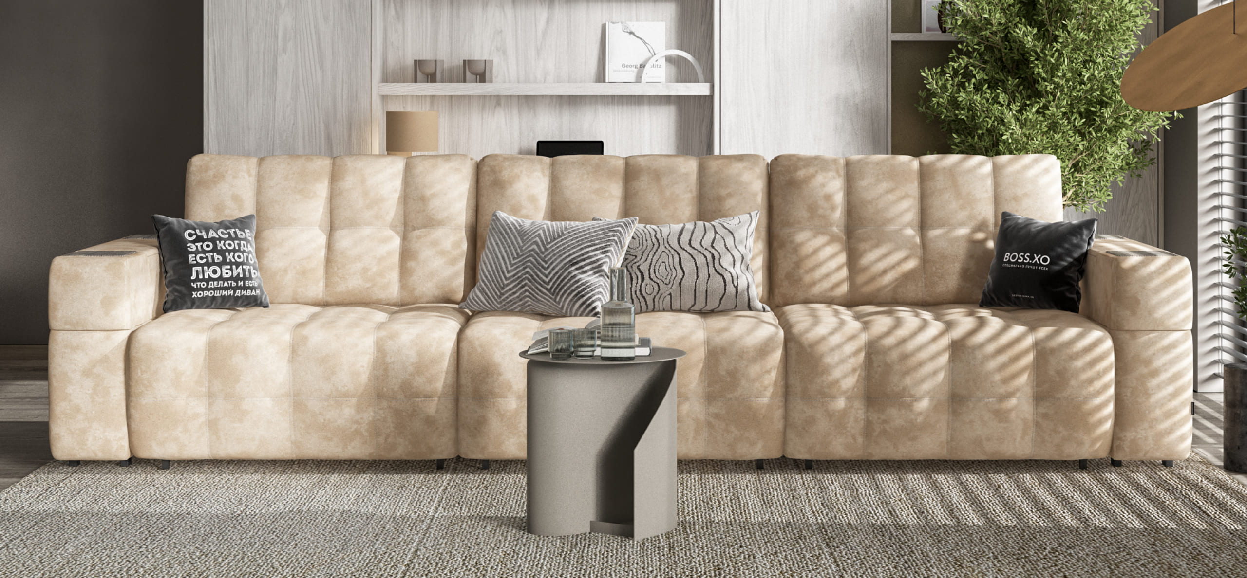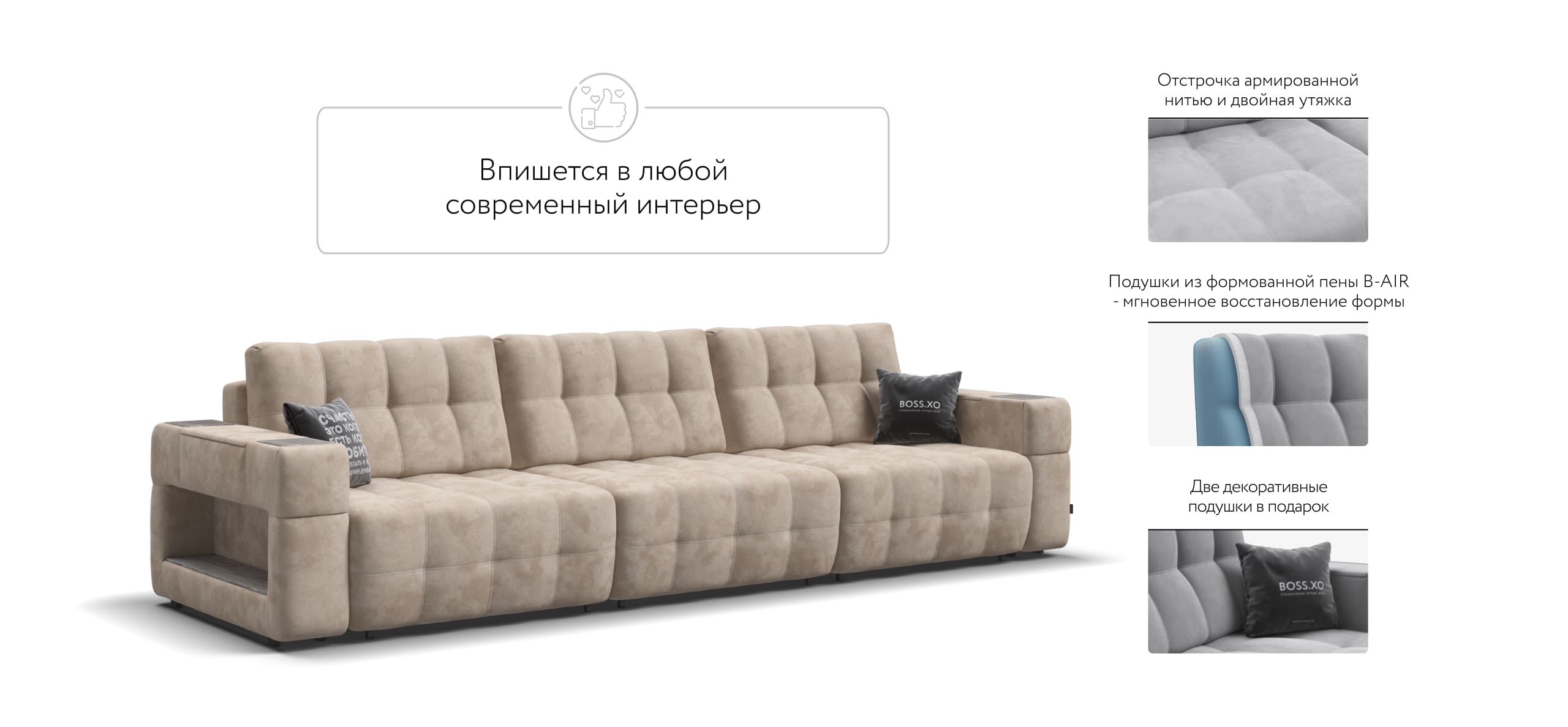 С гордостью представляем новый диван BOSS.XO MAX, разработанный специально для красоты, комфорта и радости в Вашем доме. Это не просто диван - в нём десятки новых функций, которые сделали его центром притяжения для всей Семьи.