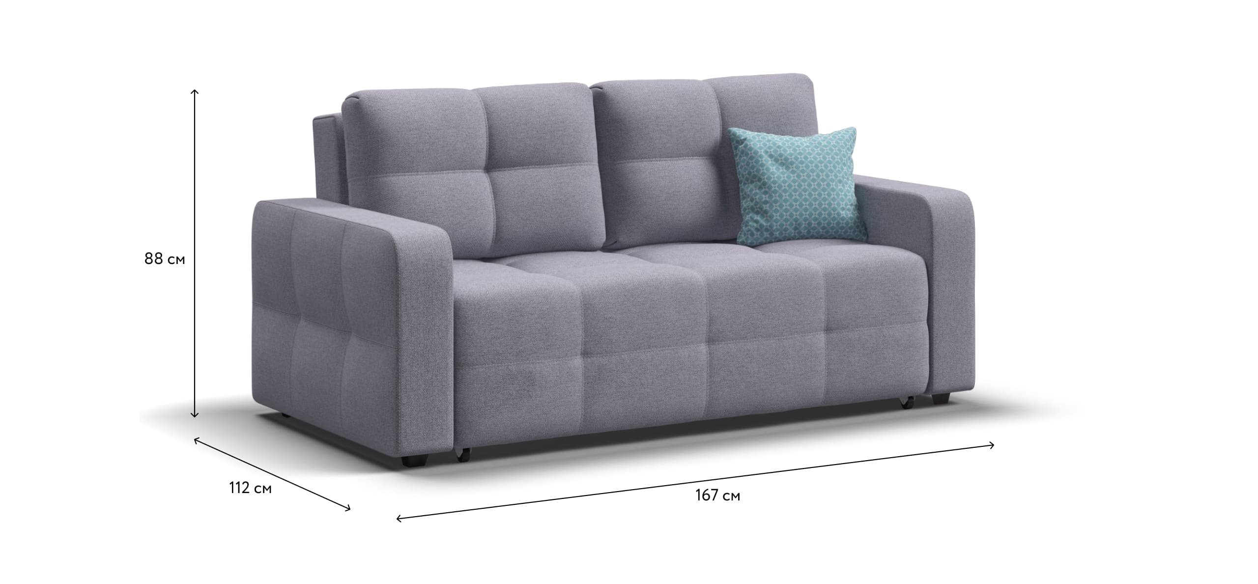 Небольшой размер дивана сочетается с оптимальным спальным местом, на котором могут с комфортом разместиться 2 человека.