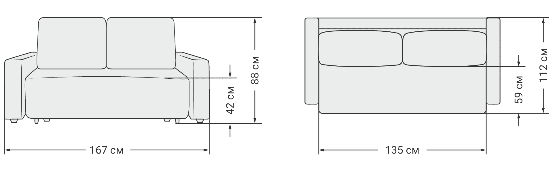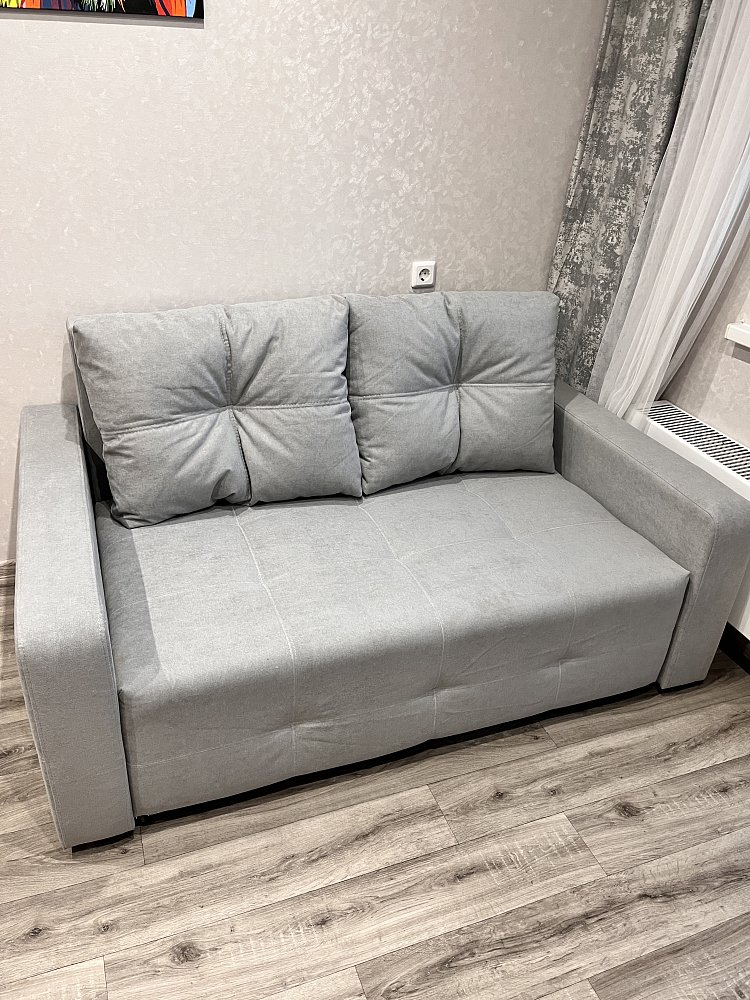 Небольшой размер дивана сочетается с оптимальным спальным местом, на котором могут с комфортом разместиться 2 человека.