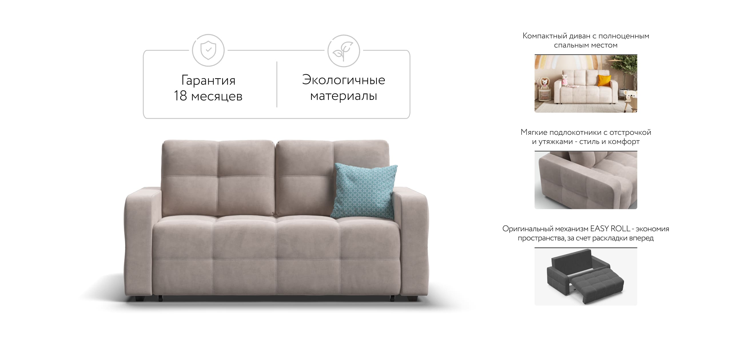 Dandy Compact – компактный диван с механизмом «EASY ROLL», который подойдет для любой современной квартиры.