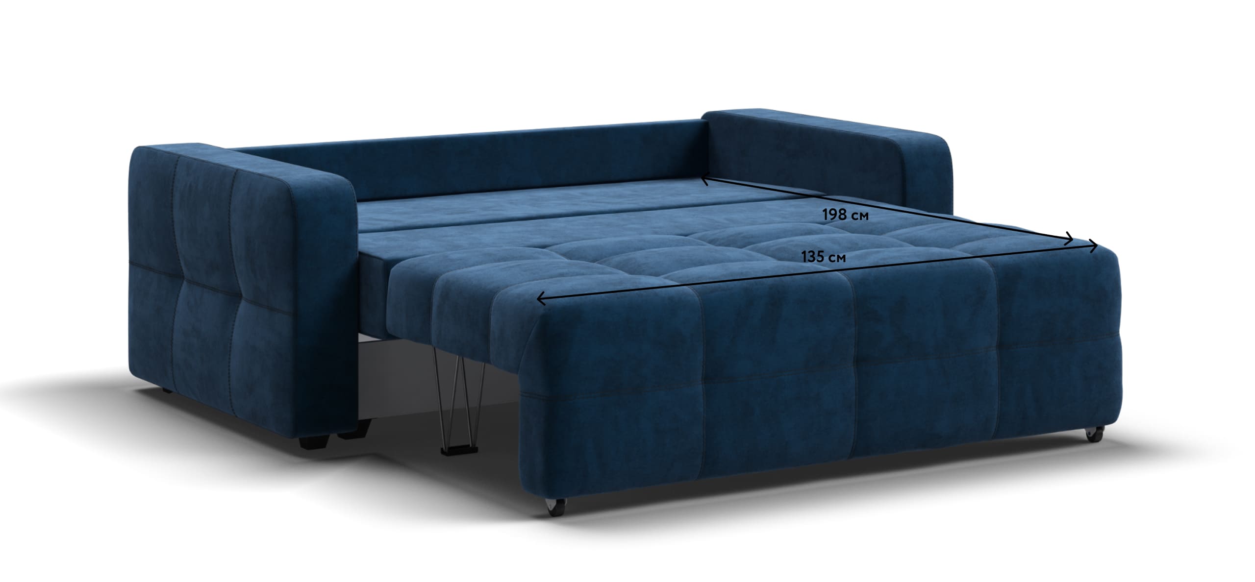 Небольшой размер дивана сочетается с оптимальным спальным местом, на котором могут с комфортом разместиться 2 человека.