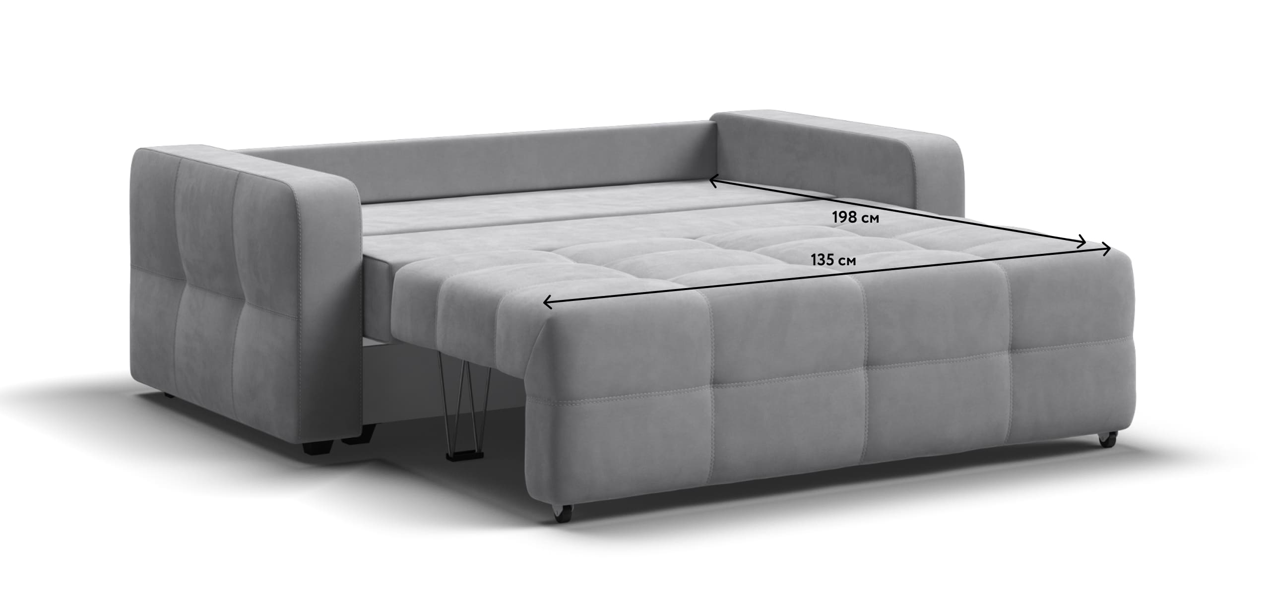 Небольшой размер дивана сочетается с оптимальным спальным местом, на котором могут с комфортом разместиться 2 человека.