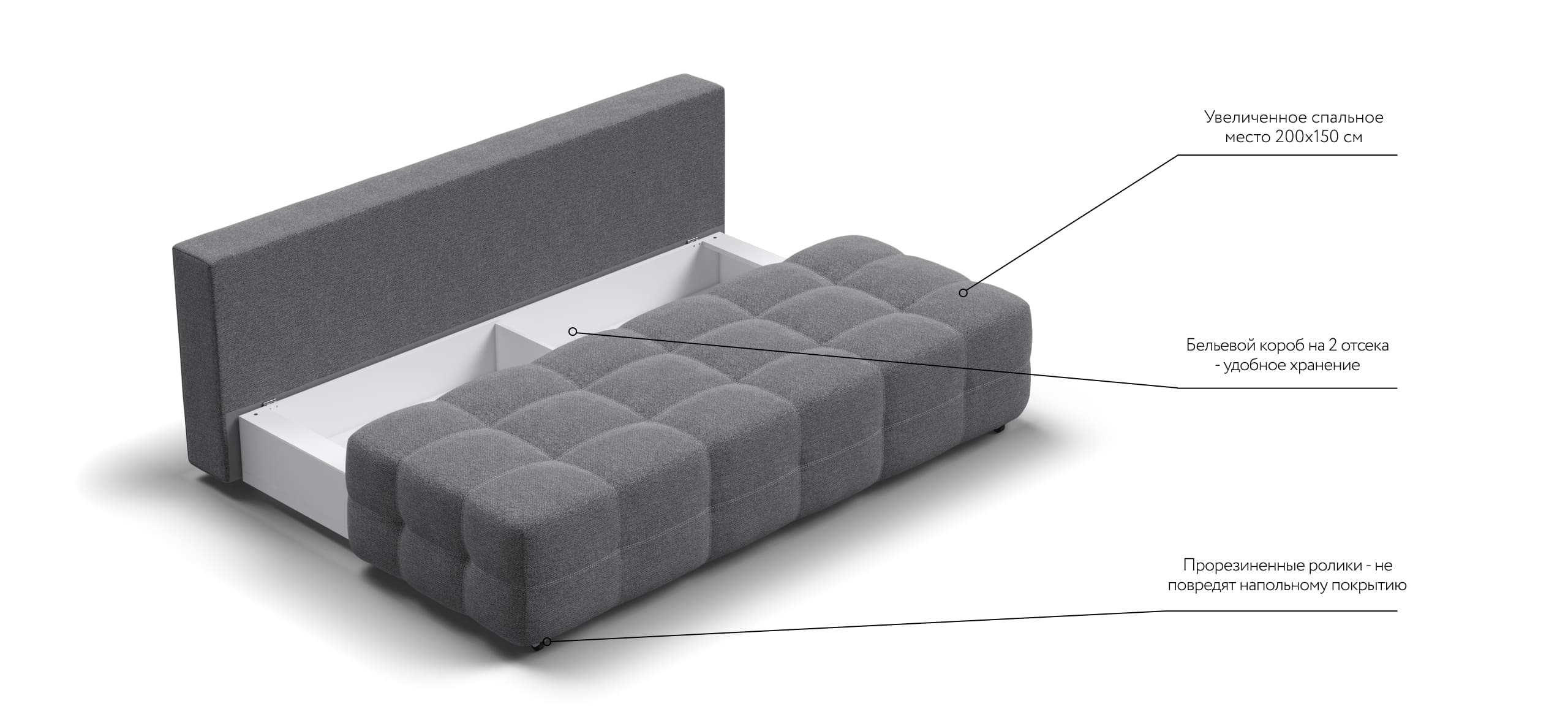 Благодаря строгому и лаконичному образу диван Dandy MINI будет уместен в любом интерьере. Удобный механизм трансформации позволяет с легкостью раскладывать диван в удобную, полноценную, двуспальную кровать.
