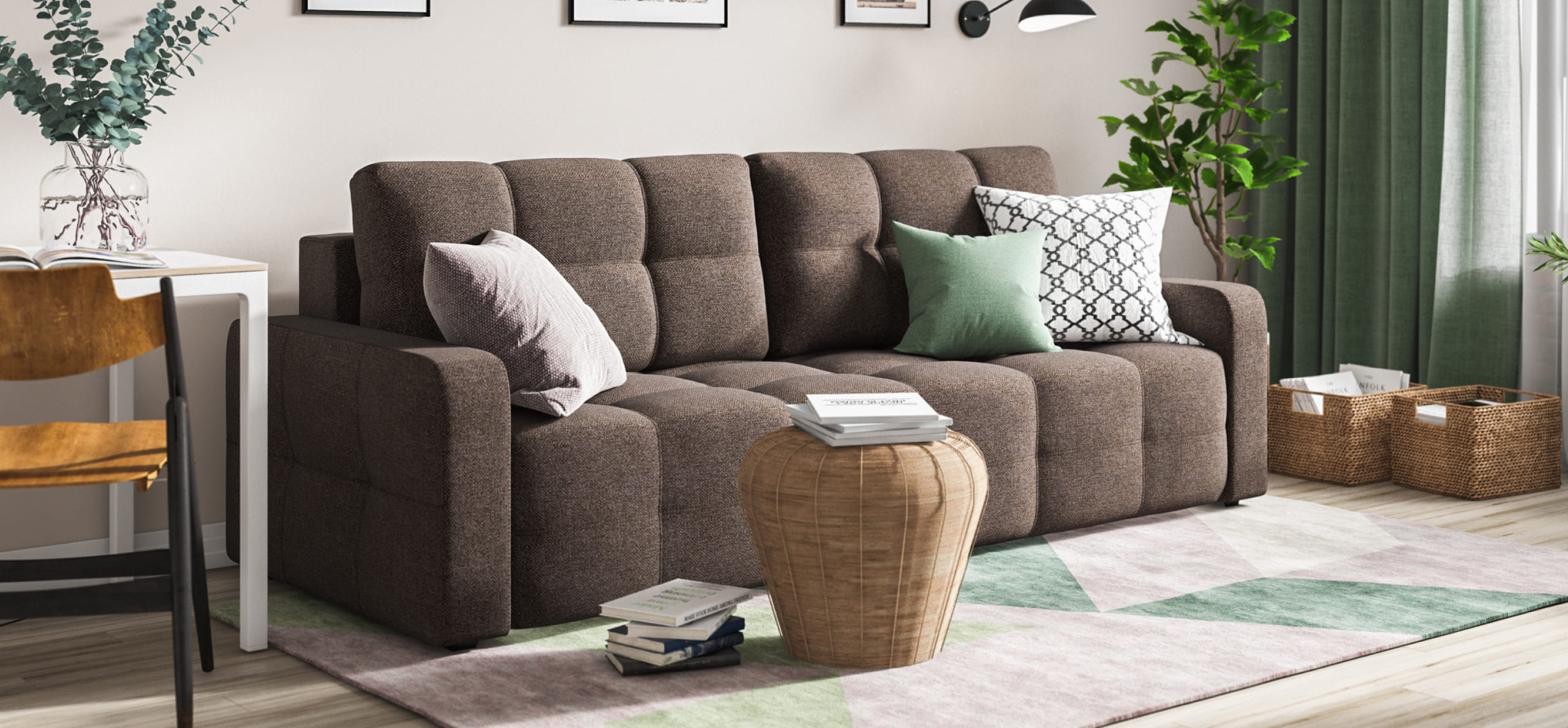 Диван Денди- с ним так легко создать настоящий уют и домашний комфорт. Мягкие приспинные подушки и независимый пружинный блок в основании обеспечат максимальный комфорт во время отдыха.