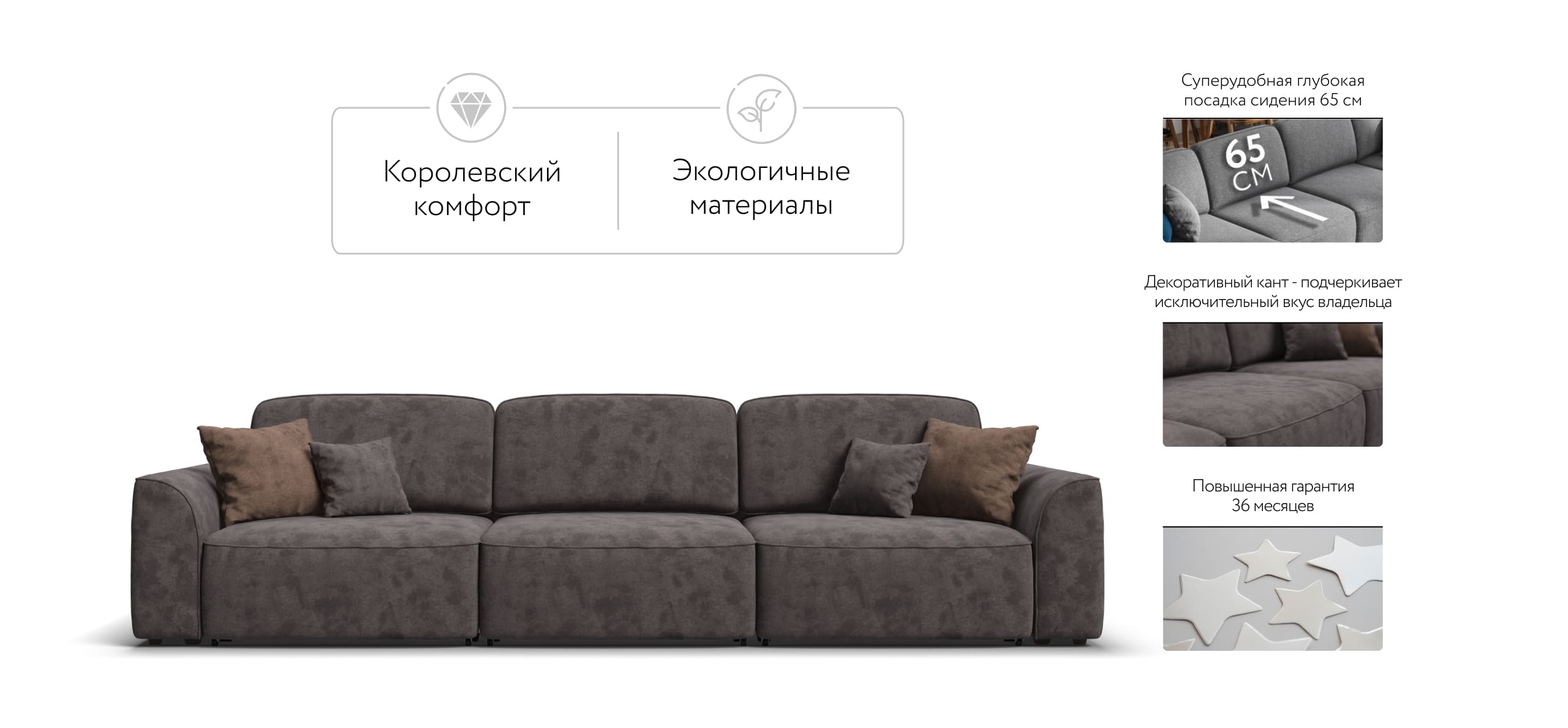 Комфортная посадка, скругленные линии, объемные подушки - диван, который наполнит ваш дом уютом и комфортом.