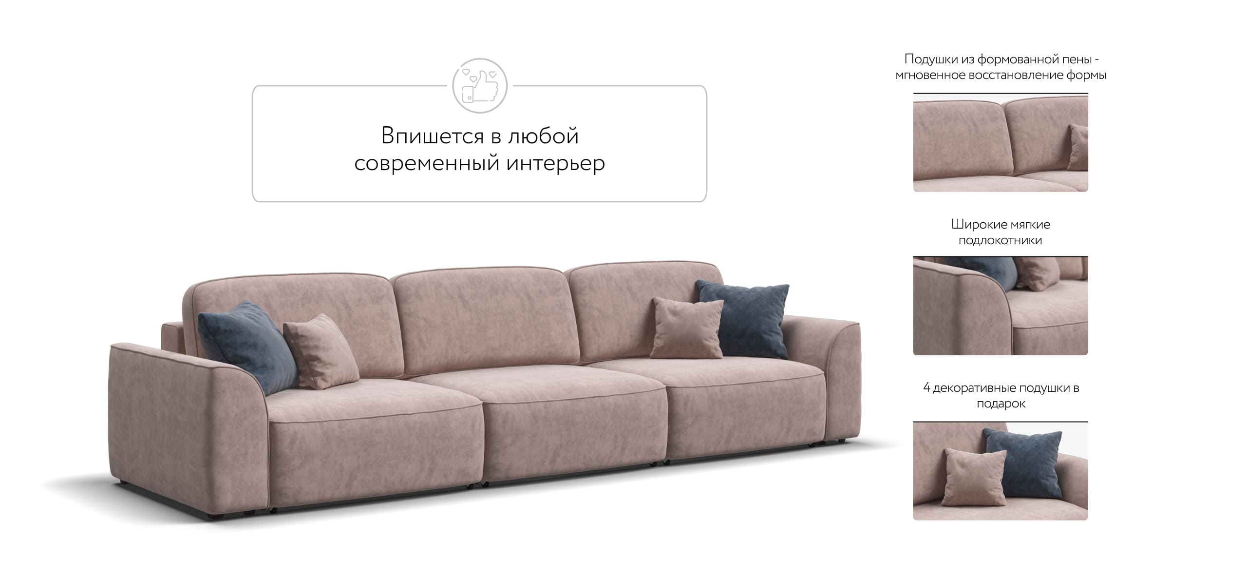 Комфортная посадка, скругленные линии, объемные подушки - диван, который наполнит ваш дом уютом и комфортом.