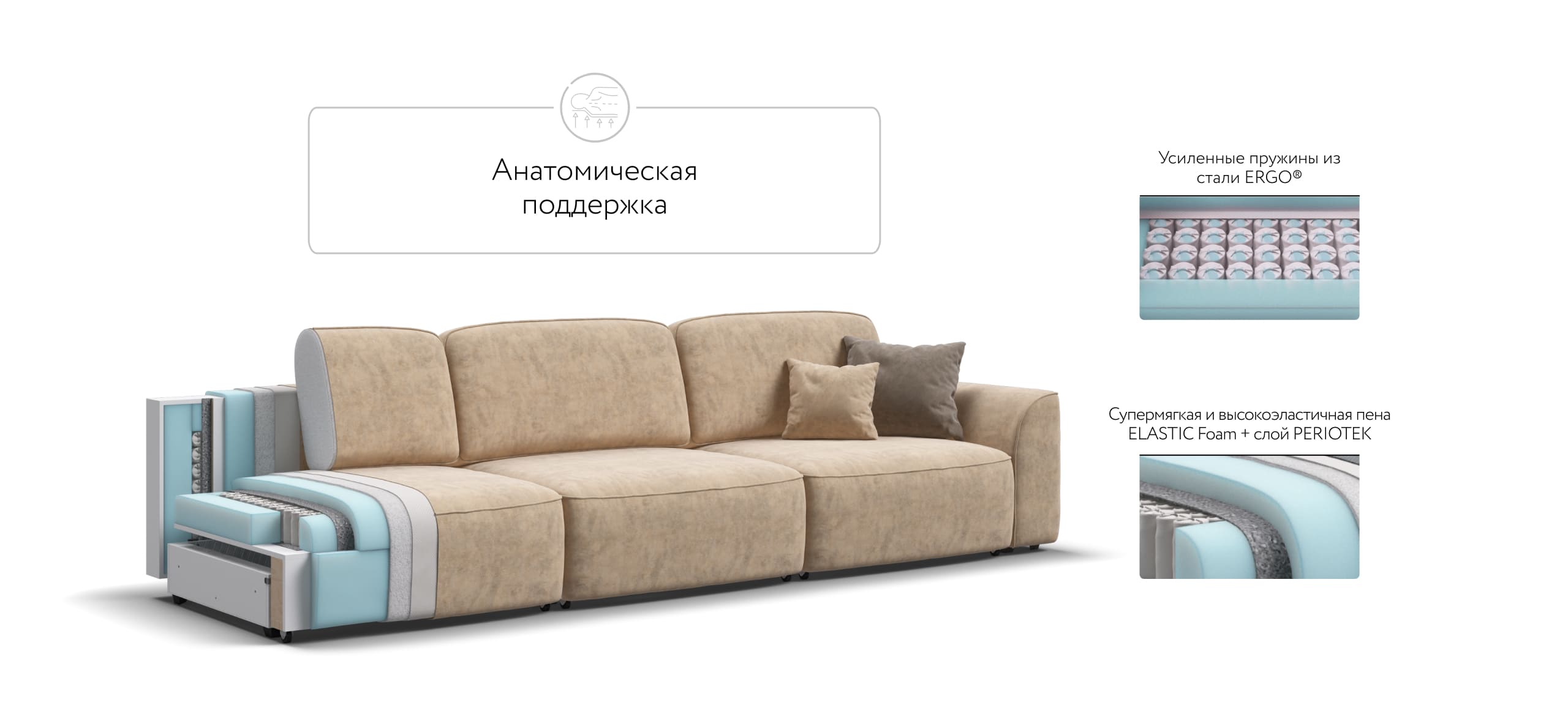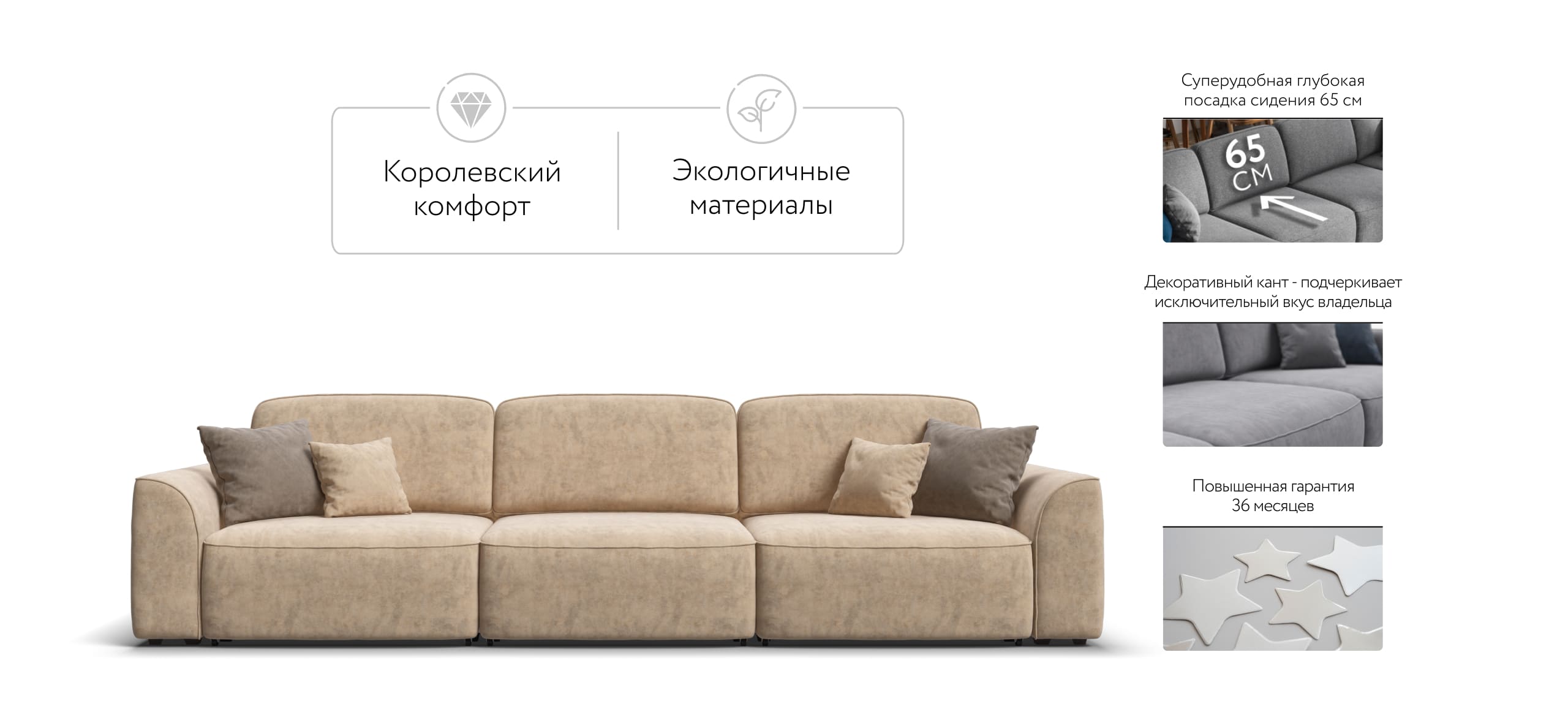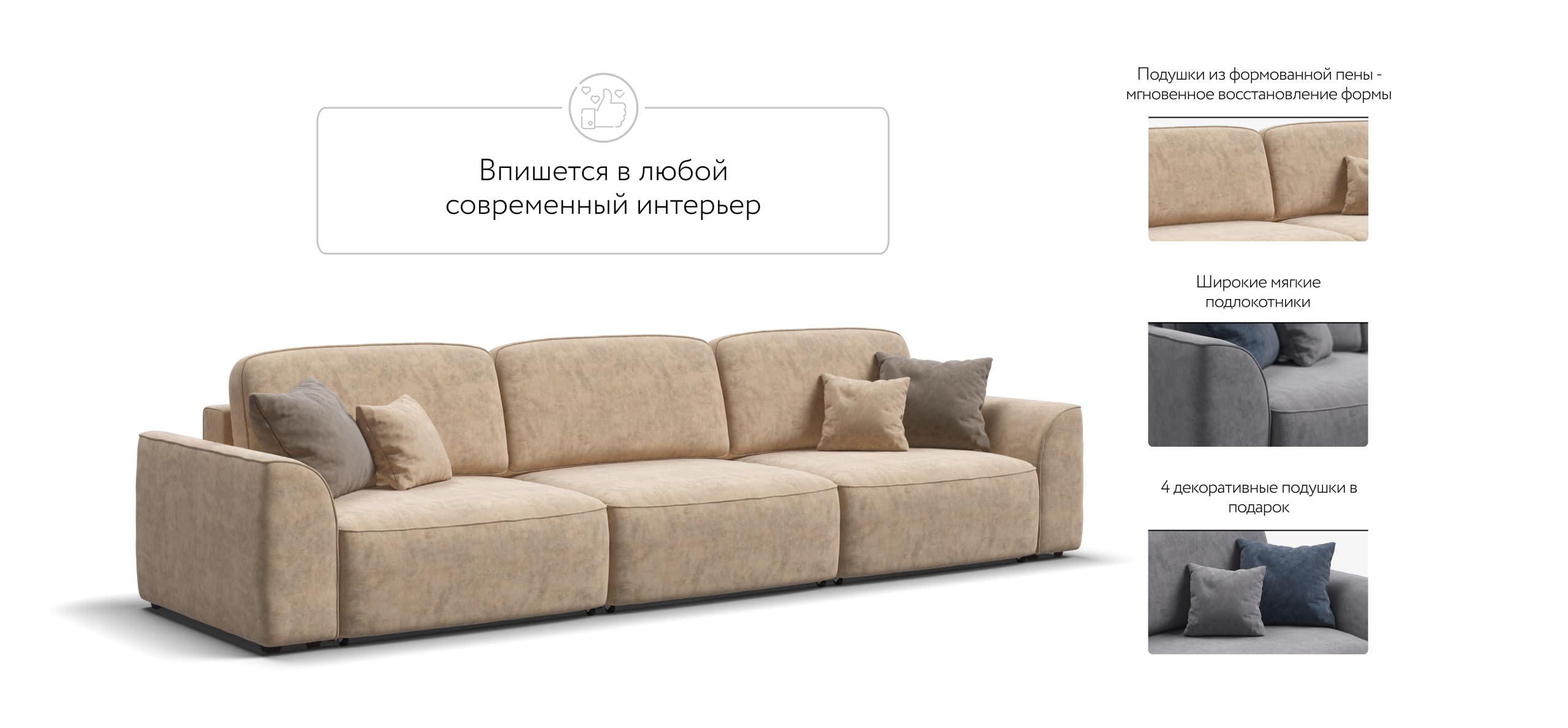 Комфортная посадка, скругленные линии, объемные подушки - диван, который наполнит ваш дом уютом и комфортом.