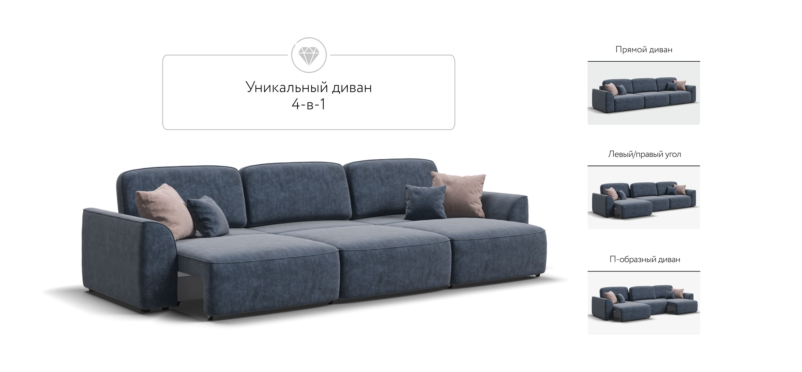 Комфортная посадка, скругленные линии, объемные подушки - диван, который наполнит ваш дом уютом и комфортом.