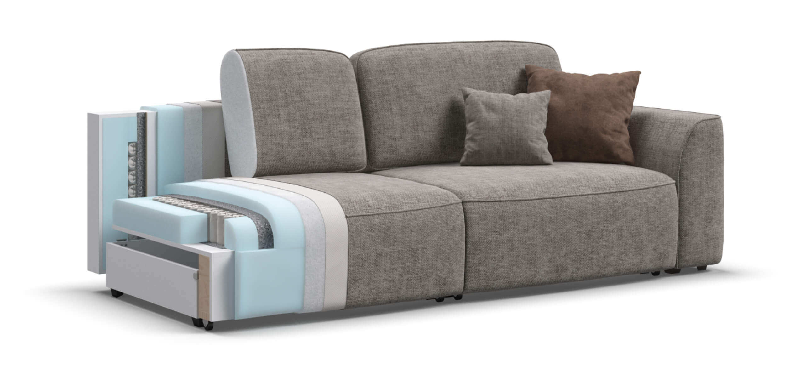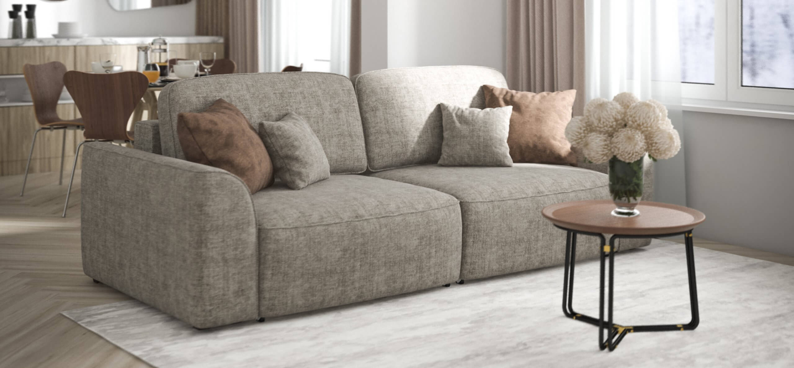 Комфортная посадка, скругленные линии, объемные подушки - диван, который наполнит ваш дом уютом и комфортом. Каждое посадочное место можно выдвинуть вперед и получить угловой диван, на котором с комфортом разместится небольшая компания. А в разложенном виде диван превращается в комфортное спальное место.