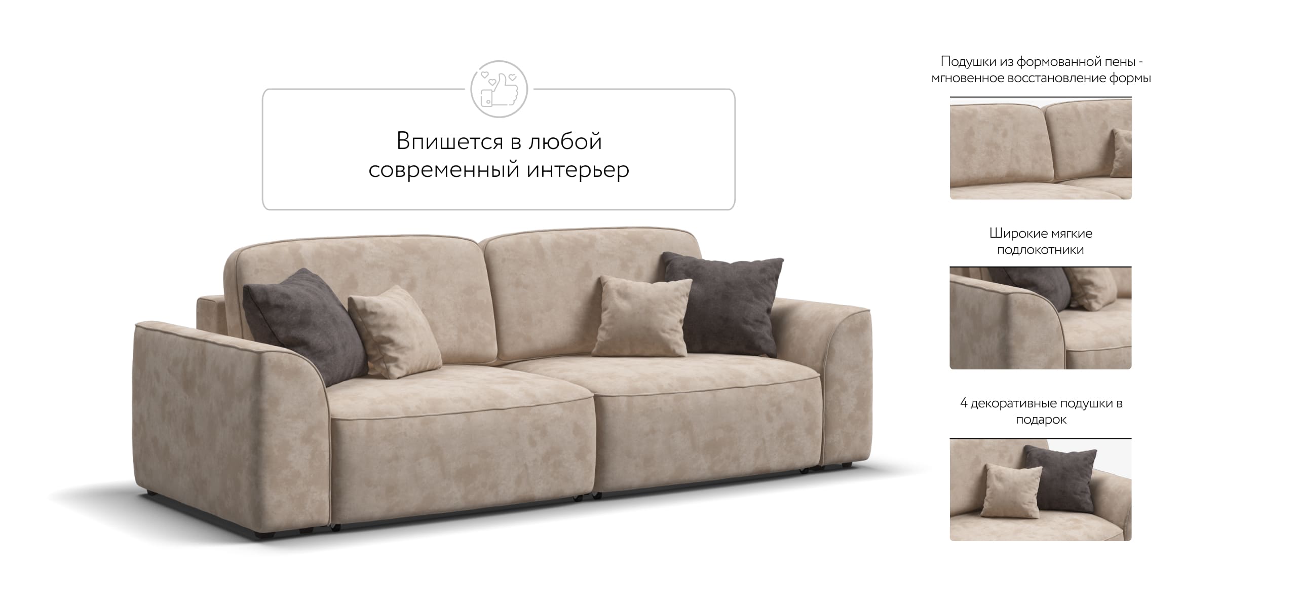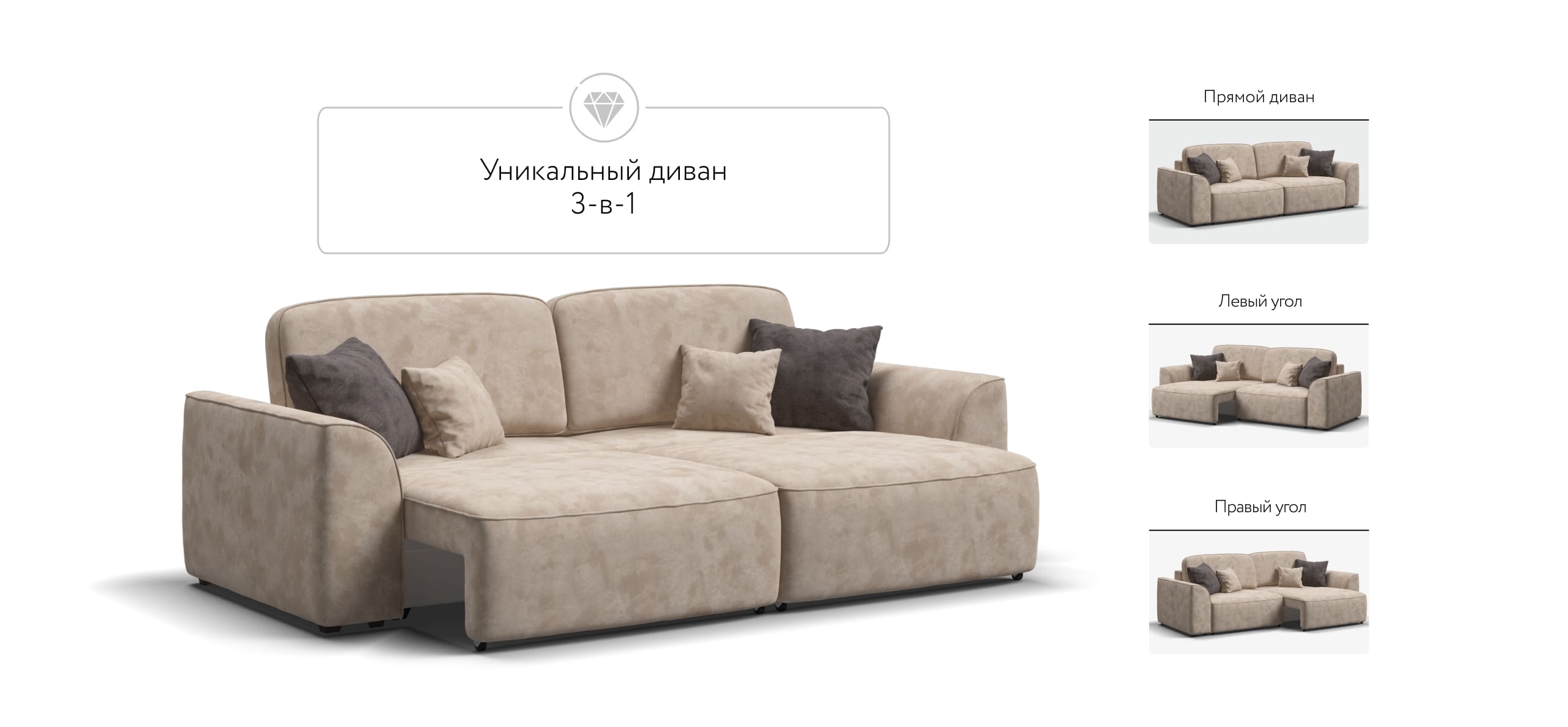 Комфортная посадка, скругленные линии, объемные подушки - диван, который наполнит ваш дом уютом и комфортом. Каждое посадочное место можно выдвинуть вперед и получить угловой диван, на котором с комфортом разместится небольшая компания. А в разложенном виде диван превращается в комфортное спальное место.